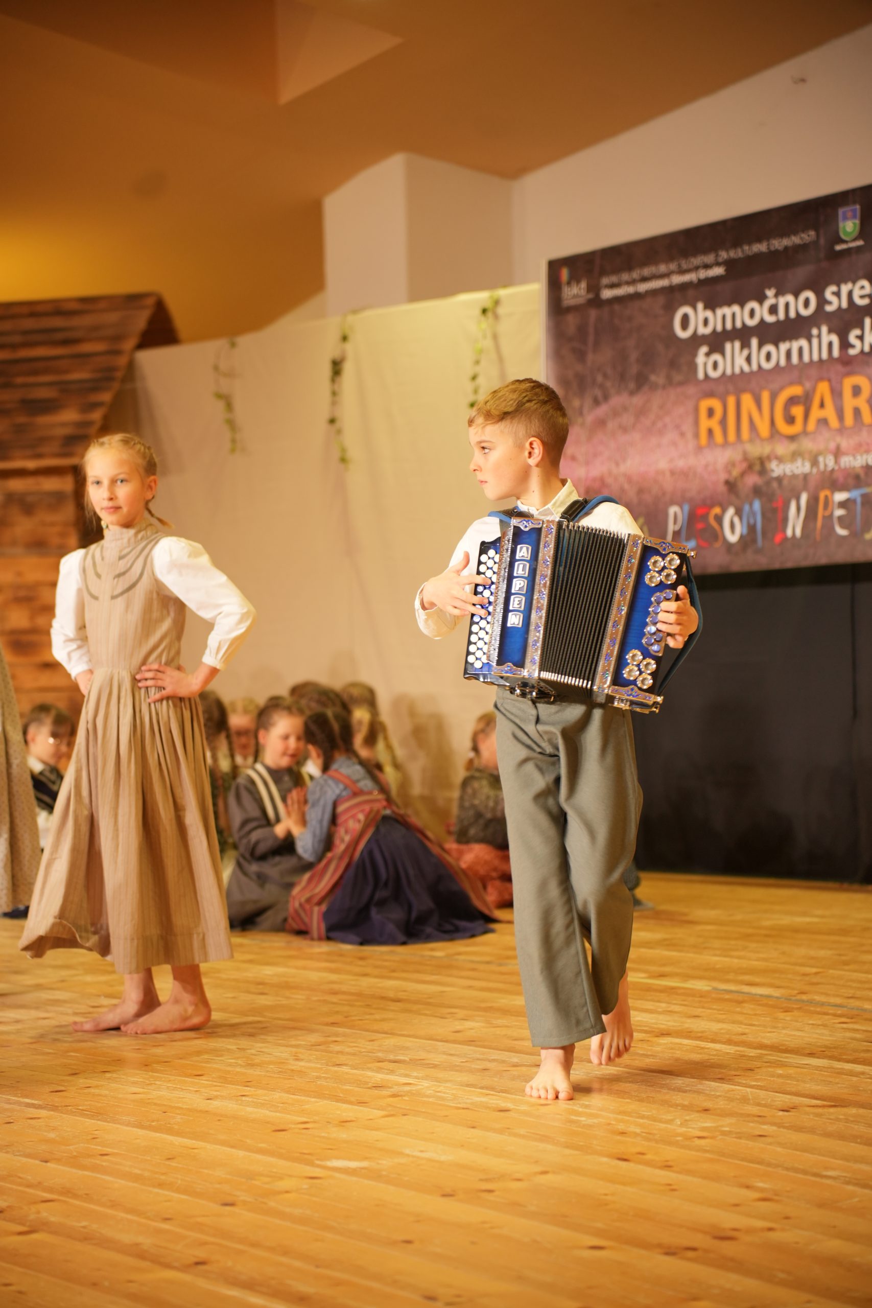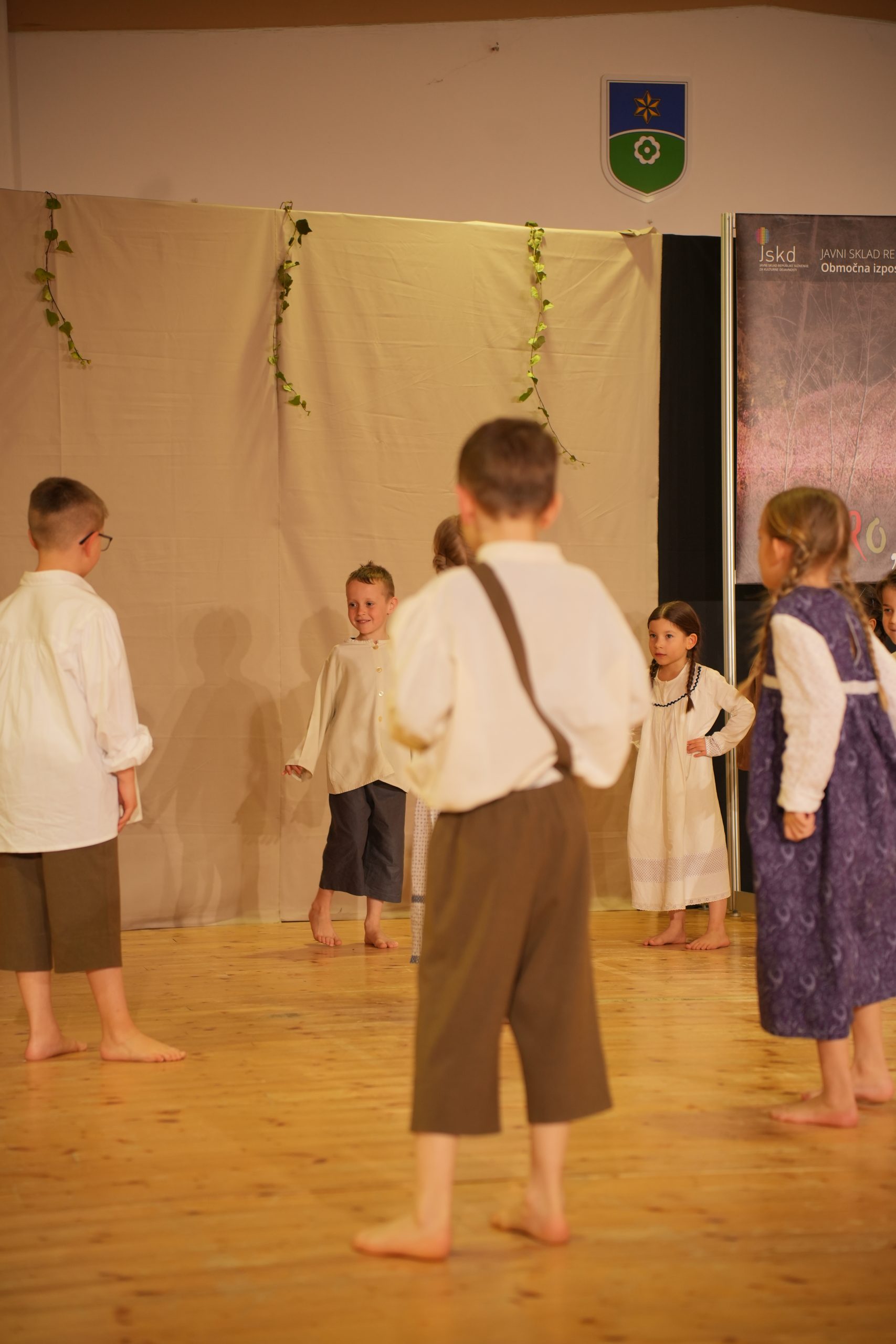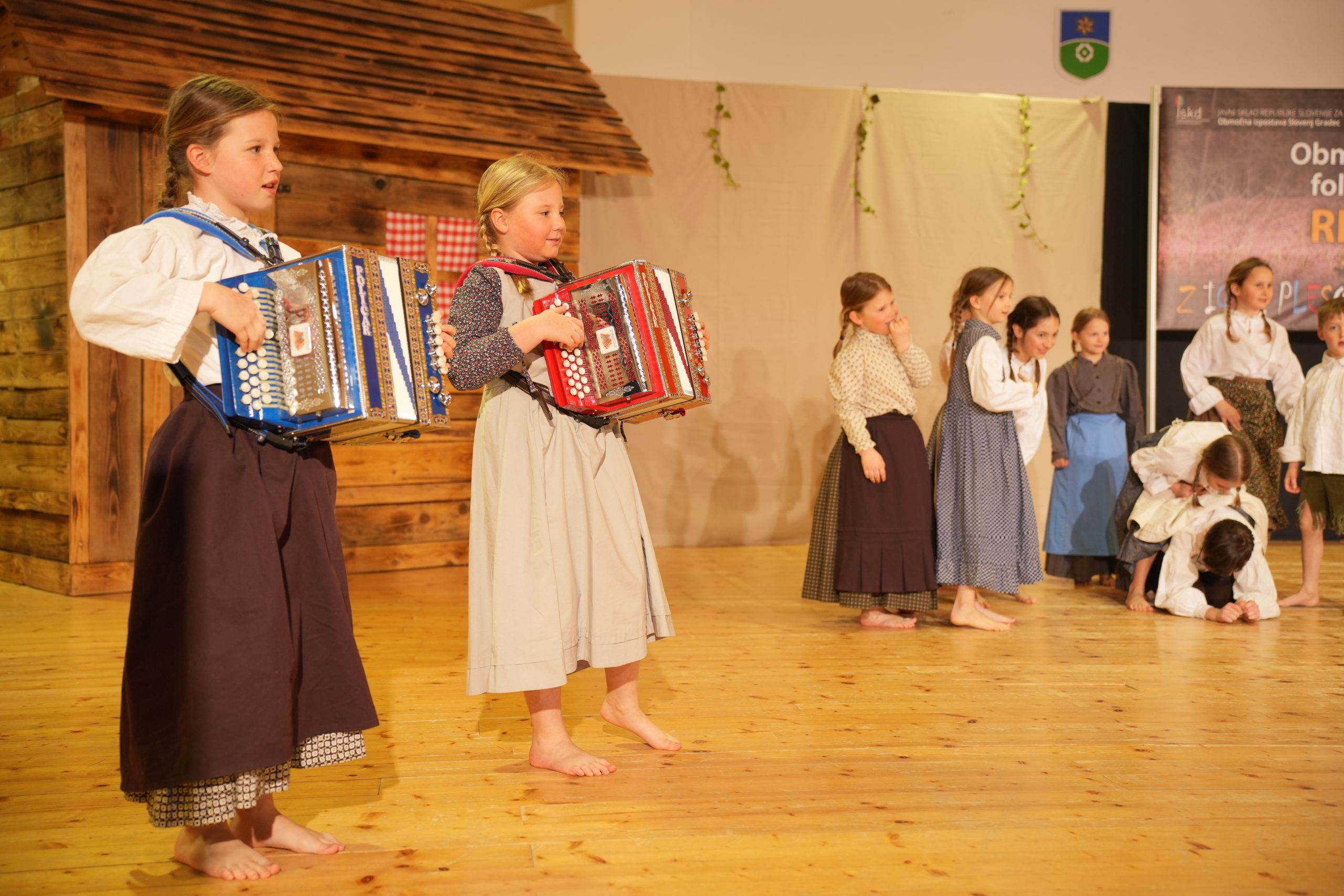 Iz dvorane so se hitro zaslišale otroške ljudske viže. Na prireditvi so mladi plesalci pokazali svoje znanje in spretnosti, ki so jih urili tekom leta. Peli so ljudske pesmi, zaplesali ob spremljavi godcev ter prikazali ljudske igre in zbadljivke.