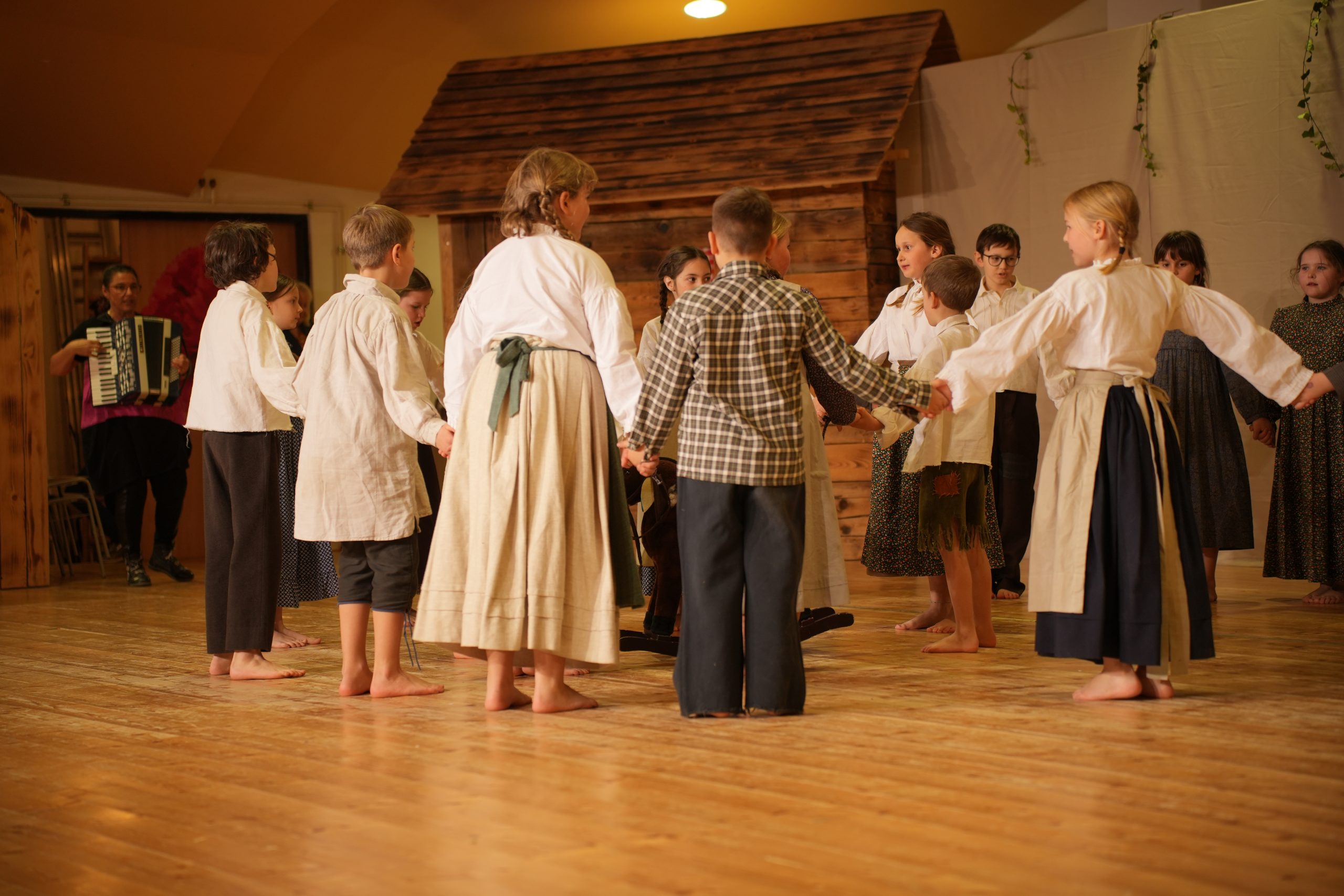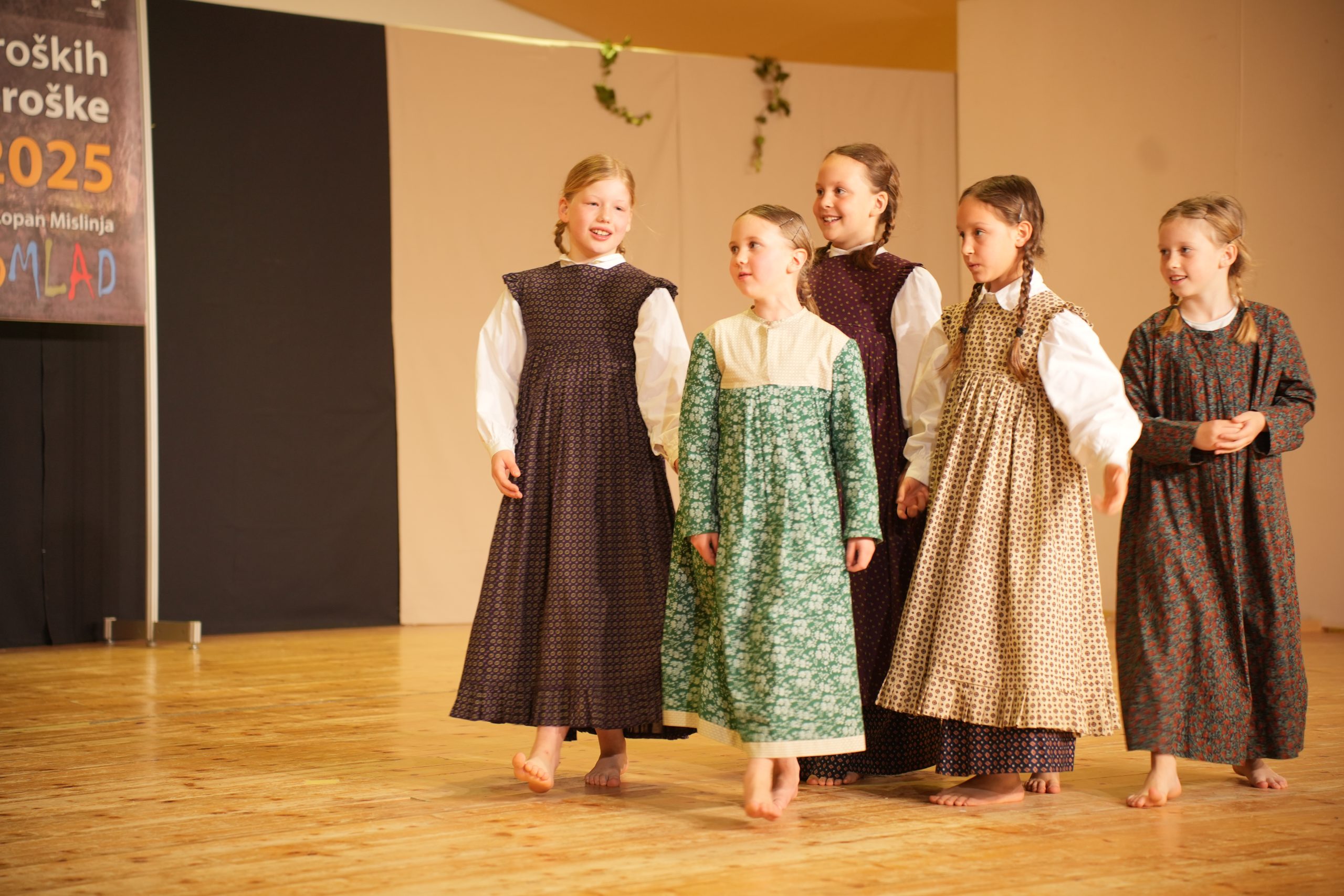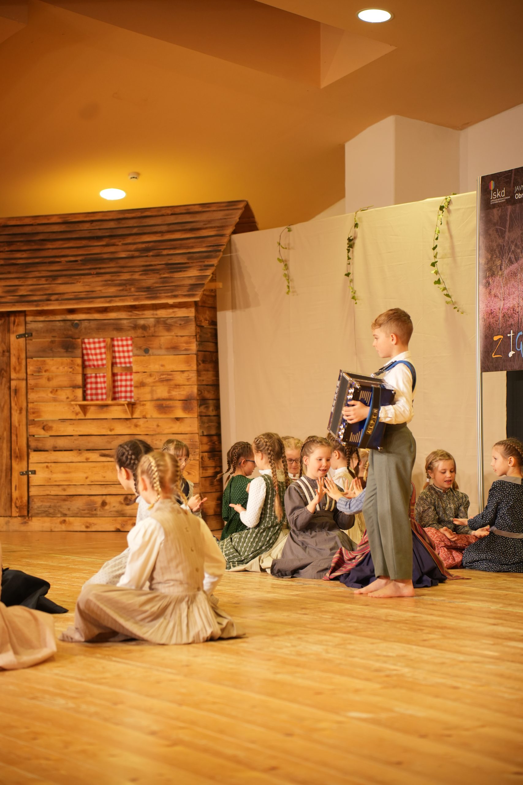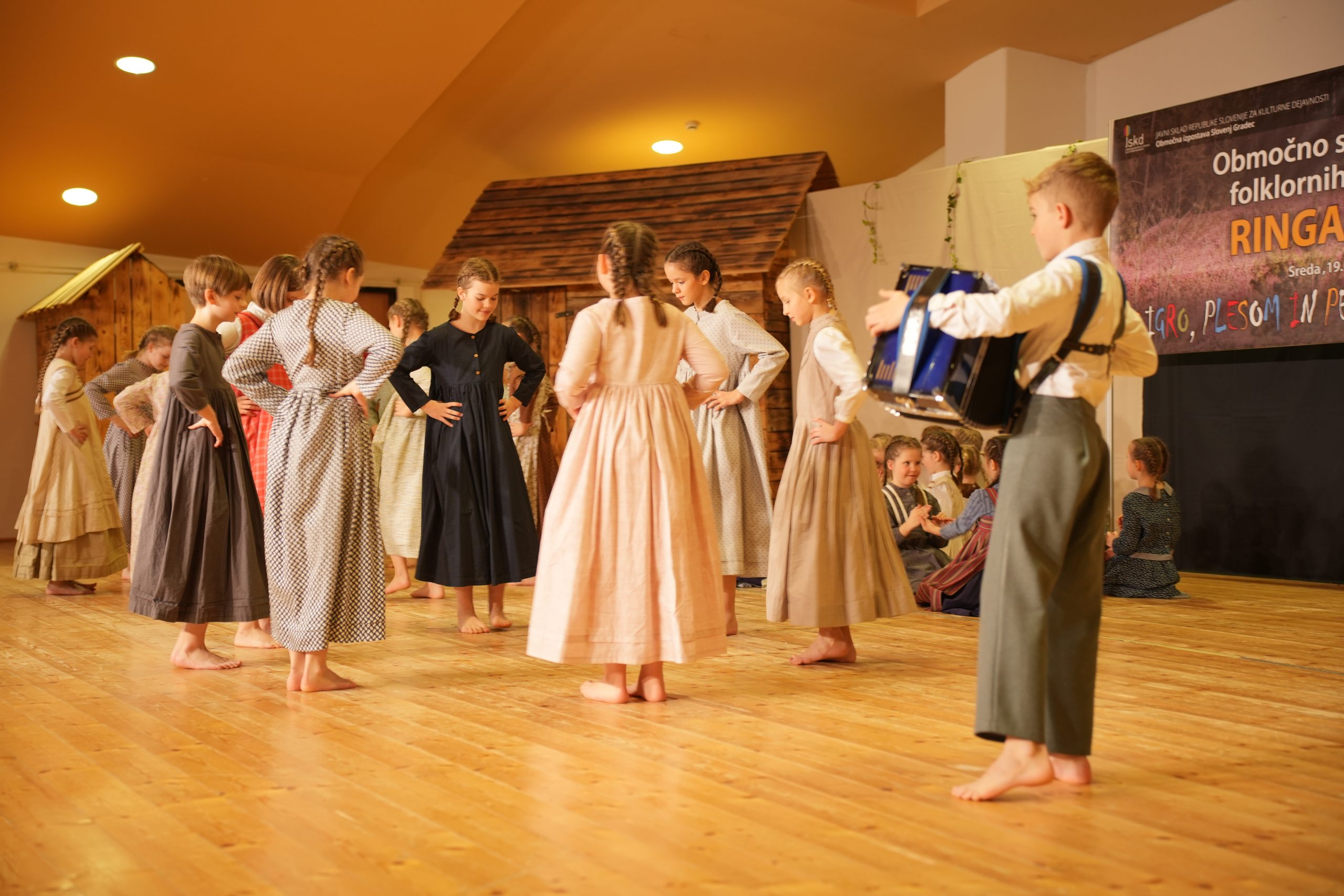 Iz dvorane so se hitro zaslišale otroške ljudske viže. Na prireditvi so mladi plesalci pokazali svoje znanje in spretnosti, ki so jih urili tekom leta. Peli so ljudske pesmi, zaplesali ob spremljavi godcev ter prikazali ljudske igre in zbadljivke.