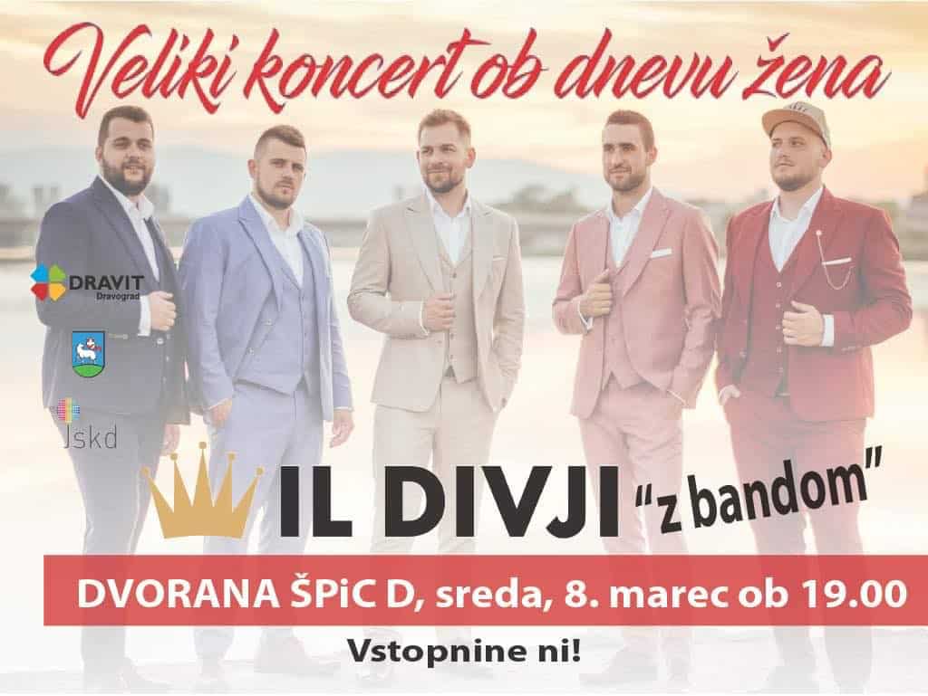 Dan žena je praznik, ki je namenjen vsem pripadnicam nežnejšega spola. Koncert z zasedbo Il Divji pa bo lep poklon ob prazniku. Seveda pa so lepo vabljeni tudi vsi možje in predstavniki močnejšega spola, da pripeljete svoje dame. Vstop je prost, zato vabljeni vsi od blizu in daleč.