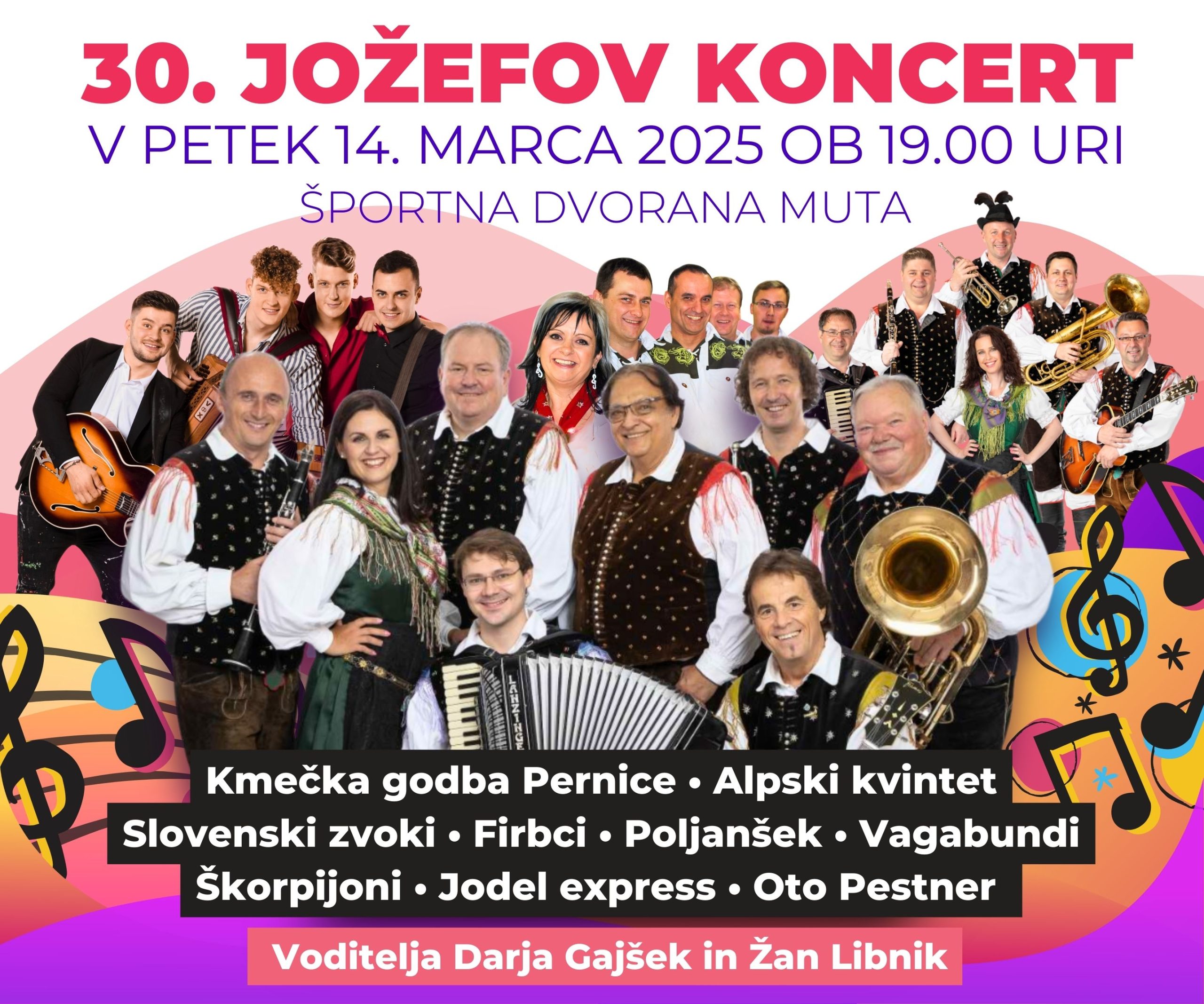 Tradicionalni koncert, ki ga vsako leto organizira Kmečka godba Pernice, je v letošnjem letu že 30. po vrsti. Na njem bodo nastopila mnoga znana imena slovenske glasbe.