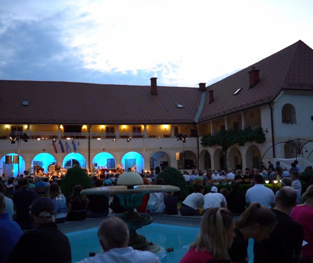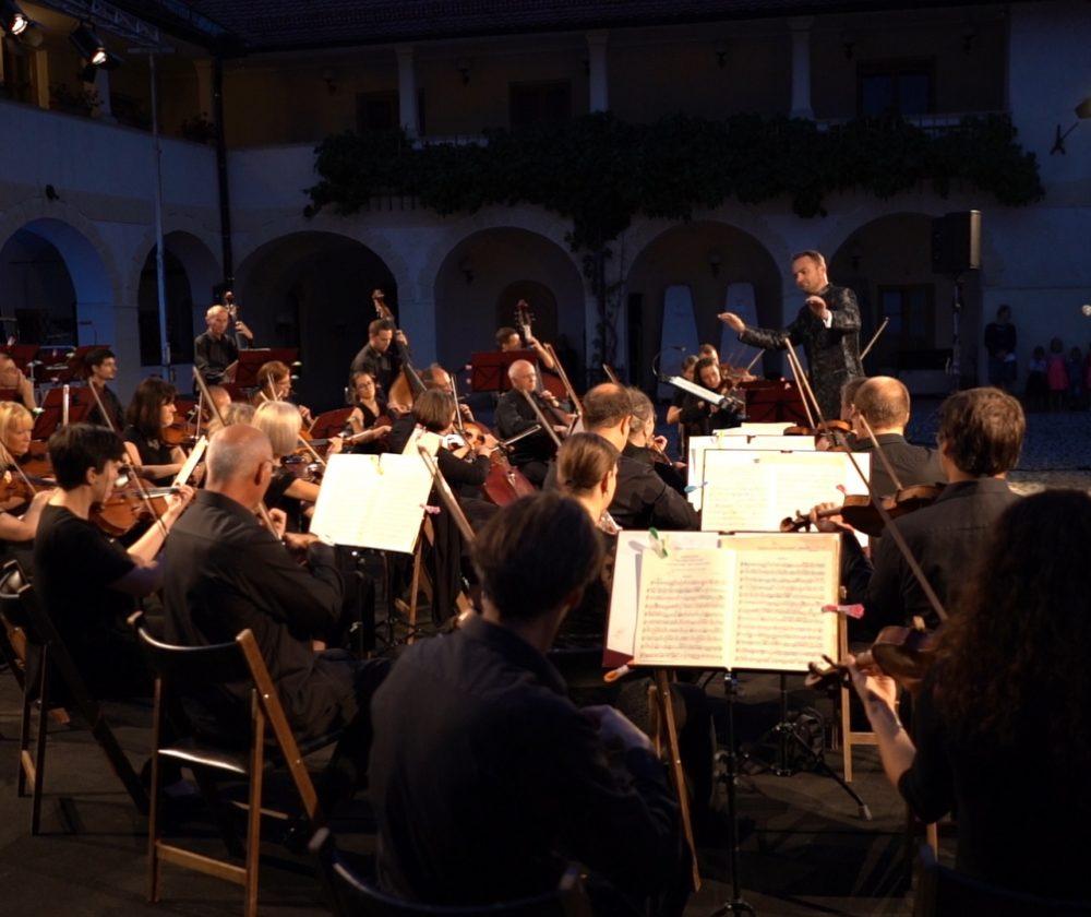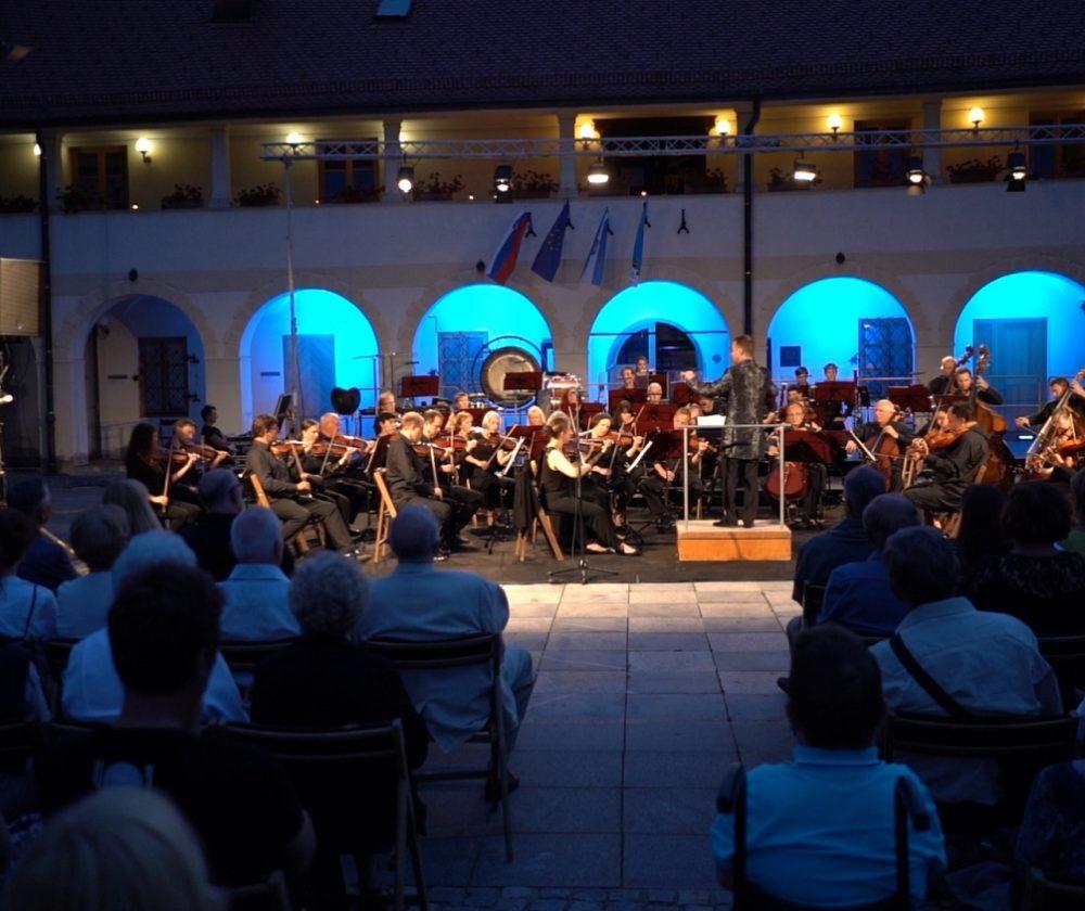 V soboto pa smo v atriju graščine Rotenturn ob 21. uri prisluhnili približno eno uro in pol dolgemu koncertu orkestra Slovenske filharmonije pod vodstvom dirigenta Simona Dvoršaka. Zaigrali so nam pesmi Wolfganga Amadeusa Mozarta, Huga Wolfa, Richarda Wagnerja, Felixa Mendelssohna idr. Na sobotni večer v atriju graščine Rotenturn se je koncerta udeležilo okoli 400 ljudi.