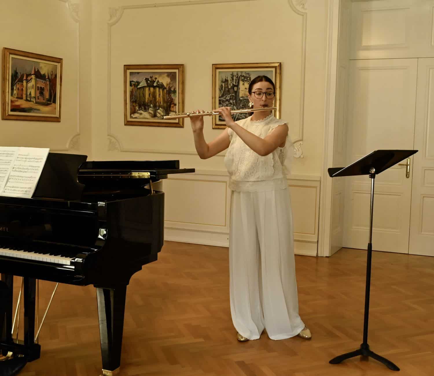 V čarobnem ambientu Dvorca Bukovje je v petek, 14. junija, potekal izvrsten koncert mlade flavtistke Tinkare Lednik z naslovom Potovanje med flavtističnimi umetninami.