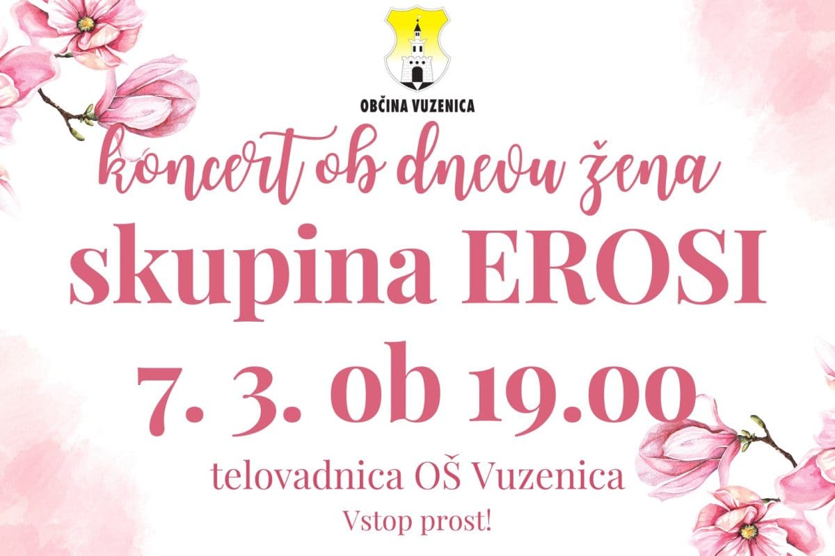 V petek, 7. marca 2025, ob 19. uri, bo v telovadnici OŠ Vuzenica poseben večer, namenjen vsem ženskam – koncert skupine Erosi. Pridružite se nam in praznujte dan žena ob zvokih čudovite glasbe, ki jo bo pričarala priljubljena skupina.