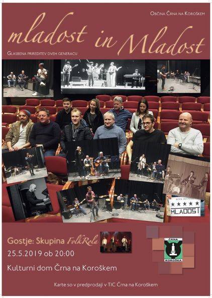 Torej še enkrat vljudno vabljeni v Črno na Koroškem, na večer z glasbo, ki jo bosta izvajali dve generaciji: skupina MLADOST po 39. letih, in generacija 1990 +: Gašper Mlinar, Miha Petek, David Piko, Tadej Piko, Rok Rednak, Maks Repanšek, Rina Repnik, Vita Repnik in kot gost, skupina FolkRola.