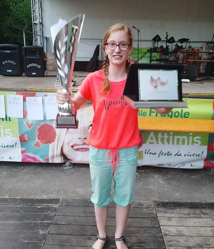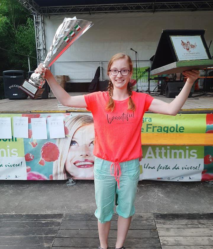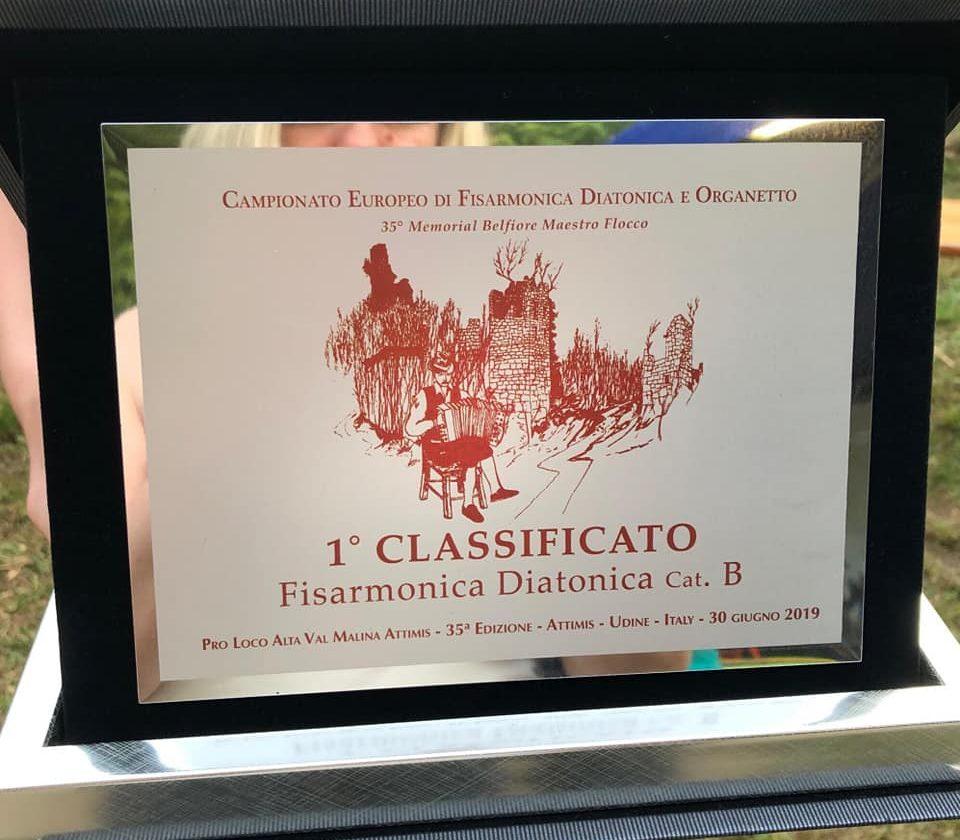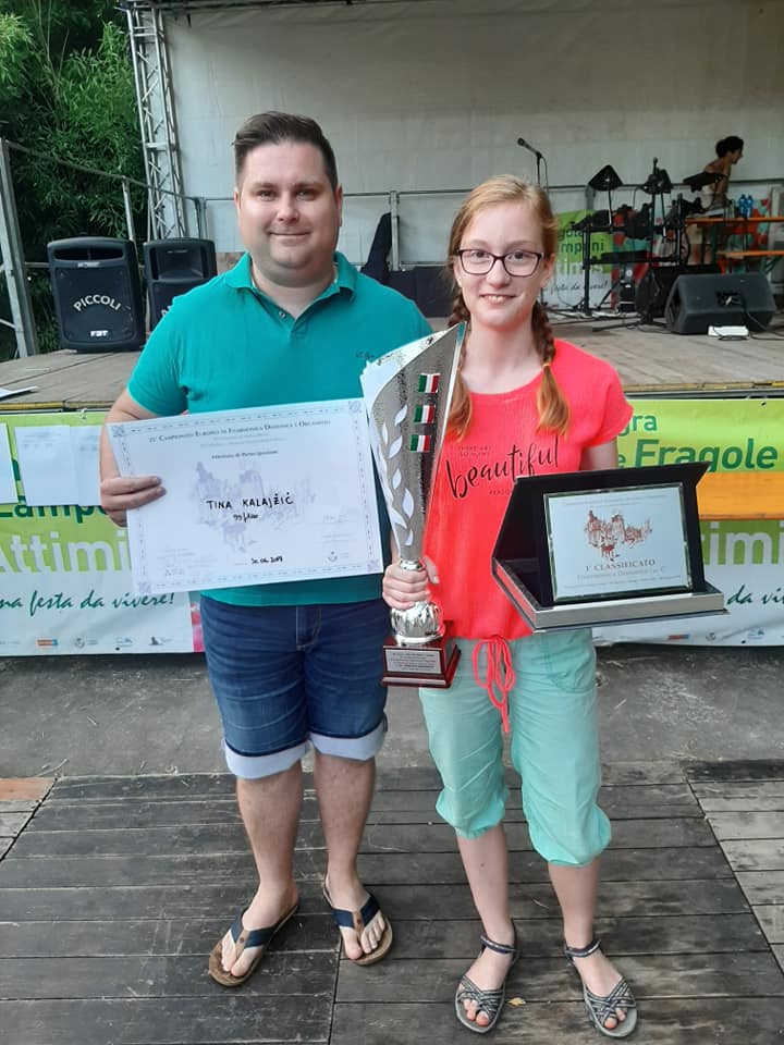 Tina je veliki konkurenci priznanih in izkušenih tekmovalcev tokrat najbolj prepričala strogo komisijo in s skladbama Frikeros (K. Rošer) in Crazy world (K. Rošer) dosegla prvo mesto v kategoriji 15 do 18 let. Njen dovršen nastop pa bil nagrajen tudi z nazivom absolutne evropske prvakinje v igranju na diatonično harmoniko 2019.
