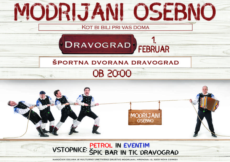 V Športni dvorani Dravograd bo 1. februarja, ob 20.uri koncert Modrijanov.