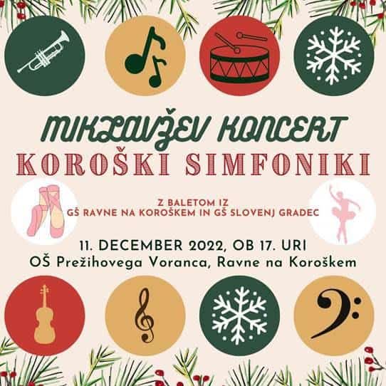 To nedeljo, 11. decembra, ob 17. uri bo v OŠ Prežihovega Voranca (Ravne na Koroškem) potekal tradicionalni Miklavžev koncert. Tudi tokrat ga bo priredil simfonični orkester "Koroški simfoniki", ki deluje pod umetniškim vodstvom Đorđe Beraka.