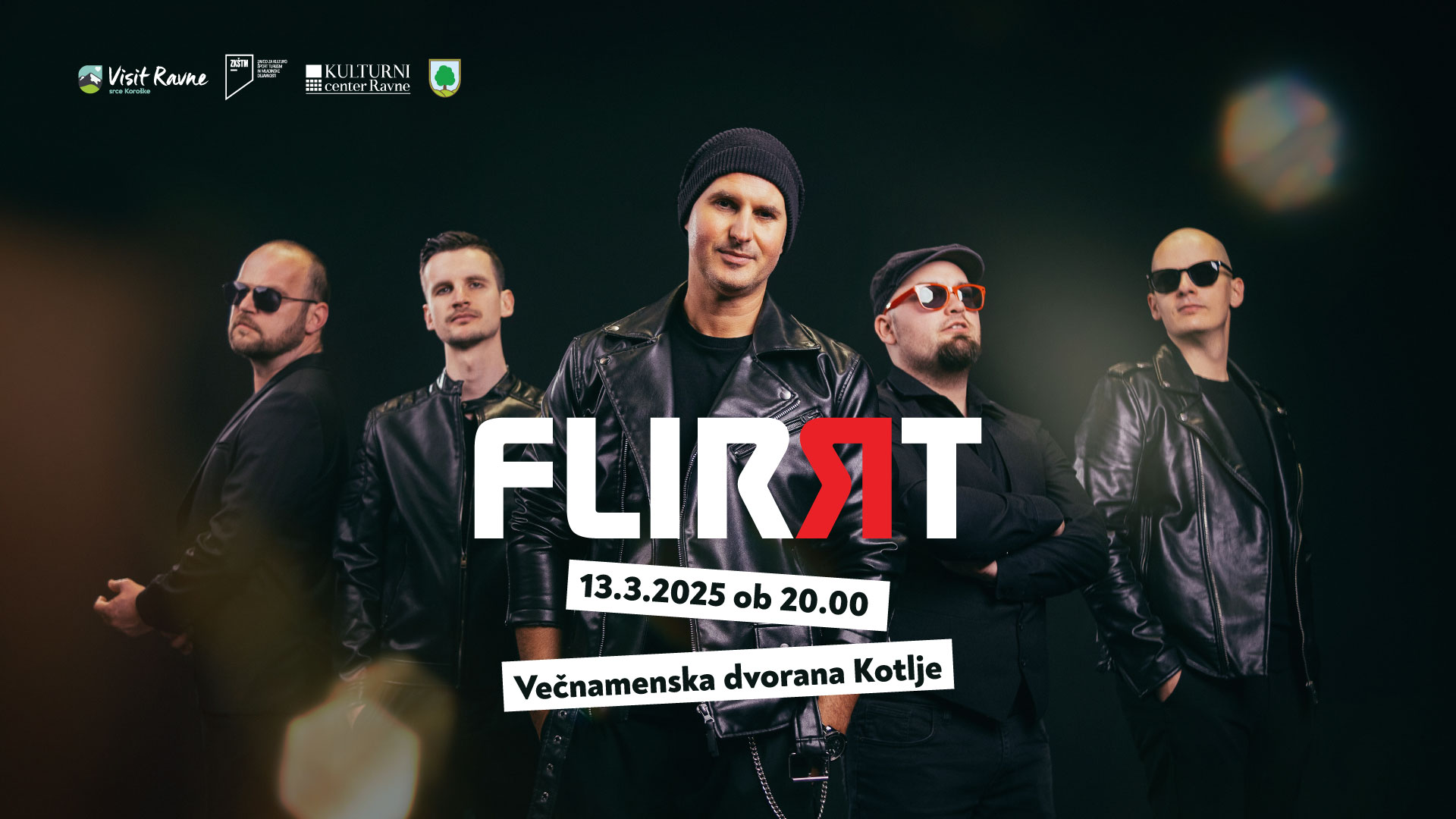 Tokrat vas bodo v Večnamenski dvorani v Kotljah navdušili legendarni Flirrt, ki bodo poskrbeli za nepozaben večer, nabit s čustvi in zimzelenimi uspešnicami.