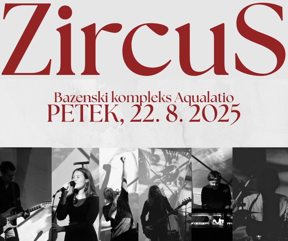 Se vidimo v petek, 22. avgusta 2025, ob 20. uri v Bazenskem kompleksu Aqualatio, kjer bodo ZircuS poskrbeli za nepozaben večer.