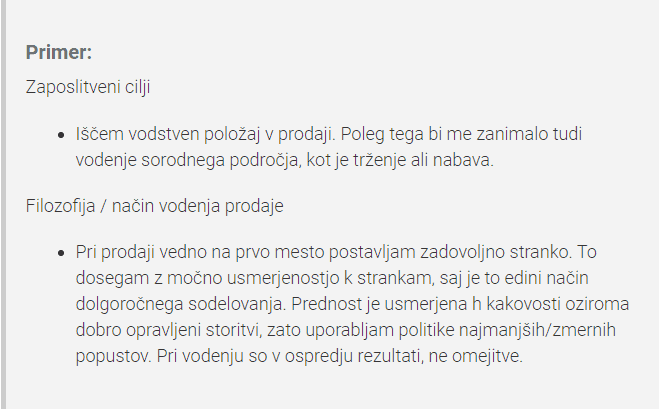 Pri tem pa je pomembno, da ne navajate le delovnih nalog, ampak tudi dosežke. Ob opisovanju nalog pa ne pozabite pripisati pridevnikov, kot so učinkovito, uspešno, zanesljivo.