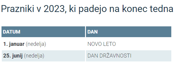 V naslednjem letu so prazniki in drugi dela prosti dnevi razporejeni tako, da jih je kar enajst med tednom, le dva pa ob koncu tedna. V 2023 bomo tako iz dela odsotni pogosteje, kot leta 2022, ko smo ostali doma le osemkrat.