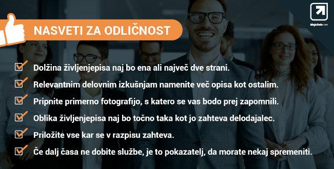 MojeDelo.com svetuje: Na življenjepis glejte kot prodajno besedilo, s katerim delodajalcu ponujate rešitev. Ne iščite oglasov za delo, ki bi ga lahko opravljali, ampak se osredotočite na to, ali delo ustreza vašim zahtevam.