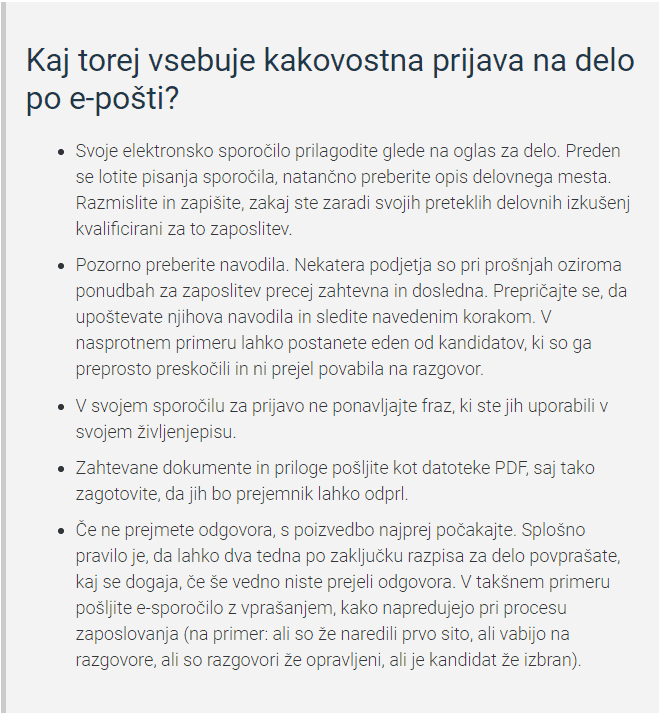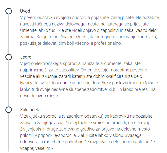 Kadar se na delovno mesto prijavljate po e-pošti, je bolje, da v sporočilo vključite: