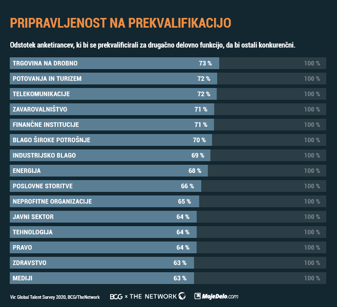 68 % vseh sodelujočih se je pripravljenih prekvalificirati za novo službo
