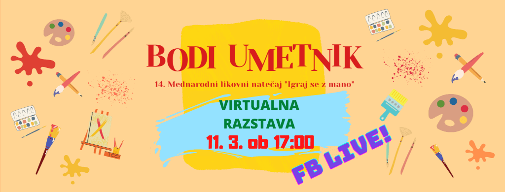 V organizaciji Centra Janeza Levca Ljubljana in soorganizaciji Društva za kulturo inkluzije ter Koroško galerijo likovnih umetnosti se bo v četrtek, 11. marca 2021, ob 17. uri odvil že 14. mednarodni kulturno likovni dogodek Bodi umetnik – Igraj se z mano.