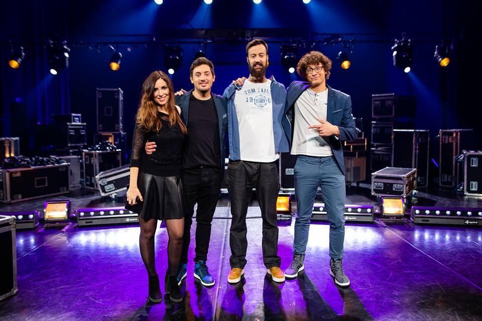 [caption id="attachment_47777" align="aligncenter" width="960"] Pevka Urška Majdič, stand-up komik in eden od pionirjev slovenskega stand-upa Tin Vodopivec, stan-up komik Jan Kreuzer in stand-up komik Rok Škrlep. Foto: Jan Čermelj[/caption]