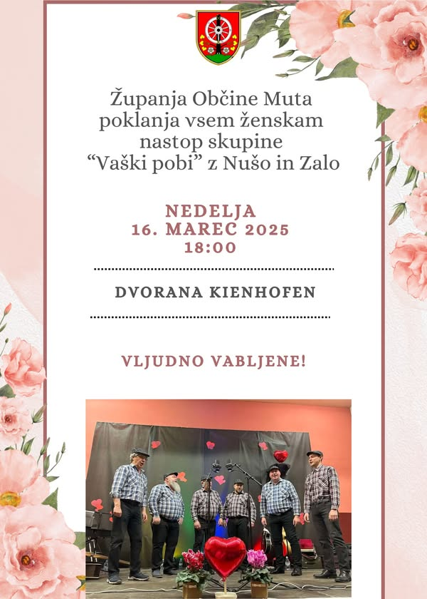 Mesec marec je čas, ko praznujejo ženske in njihovo neprecenljivo vlogo v življenjih. Zato vas županja Občine Muta vabi, da se jim pridružite na posebnem dogodku, kjer boste skupaj uživali ob glasbi, plesu in odlični družbi.