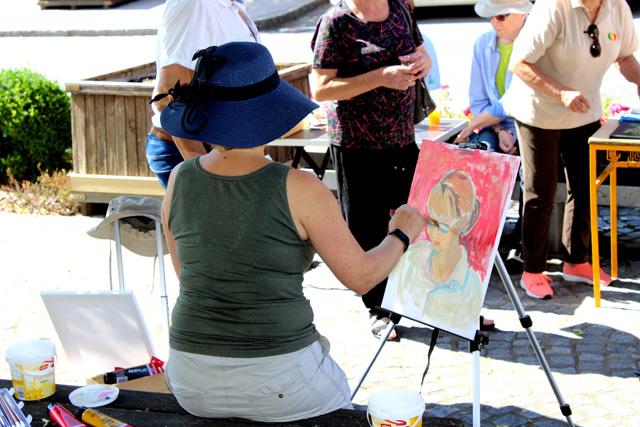Tako so se likovniki in klekljarice zbrali na prostem pred cerkvijo svetega Vida in ustvarjali v sončnem sobotnem dopoldnevu, mimoidoči pa so si lahko ogledali kako nastajajo umetniške slike in prekrasne čipke.