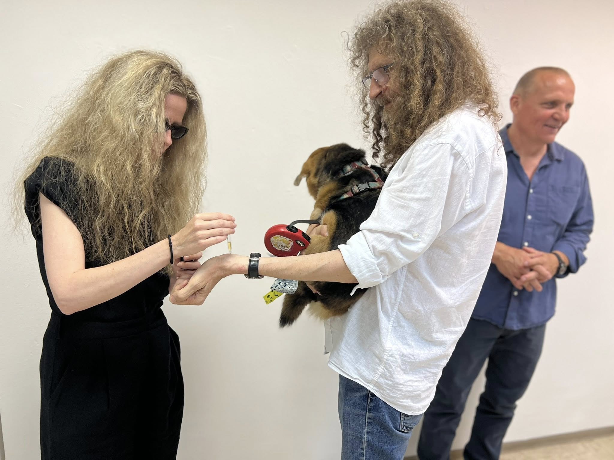 „Eau de Parfum: raum AU“ je lahko nesnovni portret umetnika. Umetnica se na ta način pokloni delu in liku Pina Poggija ter se mu, podobno kot to stori maček, zelo previdno približa, saj je atelje zelo oseben prostor – prostor, v katerega neposvečeni nimajo vstopa. Umetnik varuje svoj atelje, ker le v njem lahko ustvarja in samo točno določena konstelacija predmetov mu to omogoča. Umetnikov atelje je hortus conclusus, zaprti vrt, posvečen prostor, v njem vladajo posebna pravila. Vse te posebnosti umetnik skrbno varuje, da se ne bi porušil red stvari, ki je nekakšen odsev njegovih misli. Atelje je kot prezbiterij v cerkvi, kjer je vernik najbližje bogu, kot Mojzes pred gorečim grmom. Atelje je simbolni avtoportret.