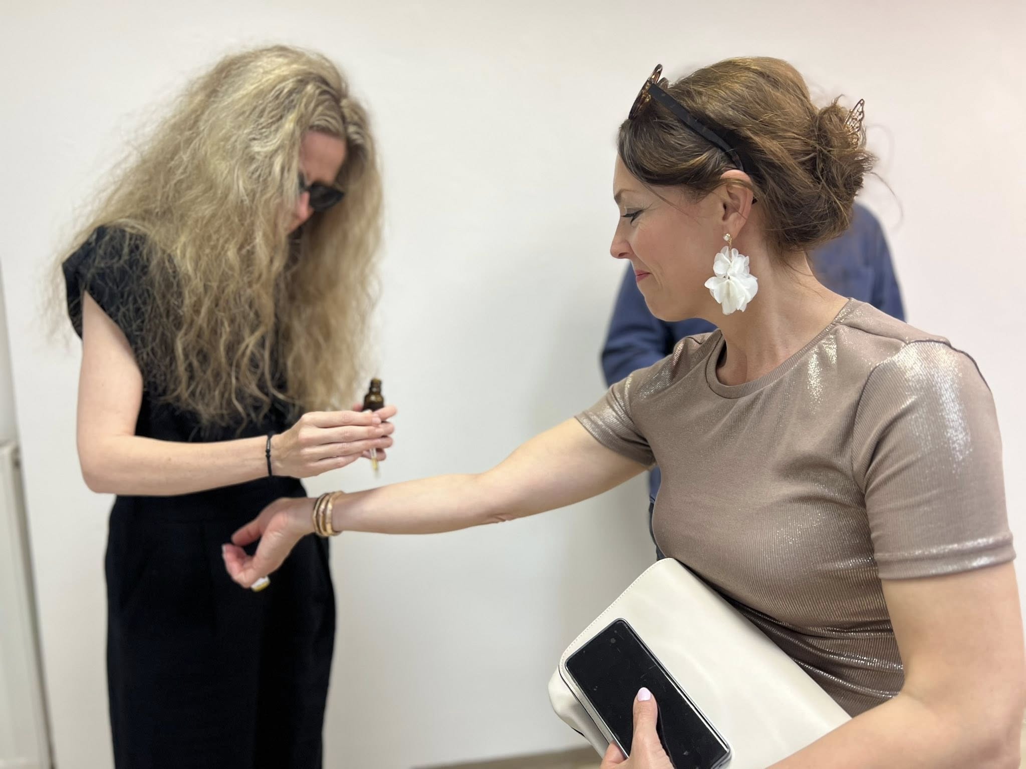 Aphra Tesla v okviru predstavitve svoje raziskave s področja nesnovne kulturne dediščine, ki jo je izvedla na umetniški rezidenci Popotovanje po Arte Utile, predstavlja parfum „Eau de Parfum: raum AU“. Razstavo so odprli v petek, 13. junija 2025, v Galeriji Raum AU, na ogled pa bo vse do 13. septembra letos.
