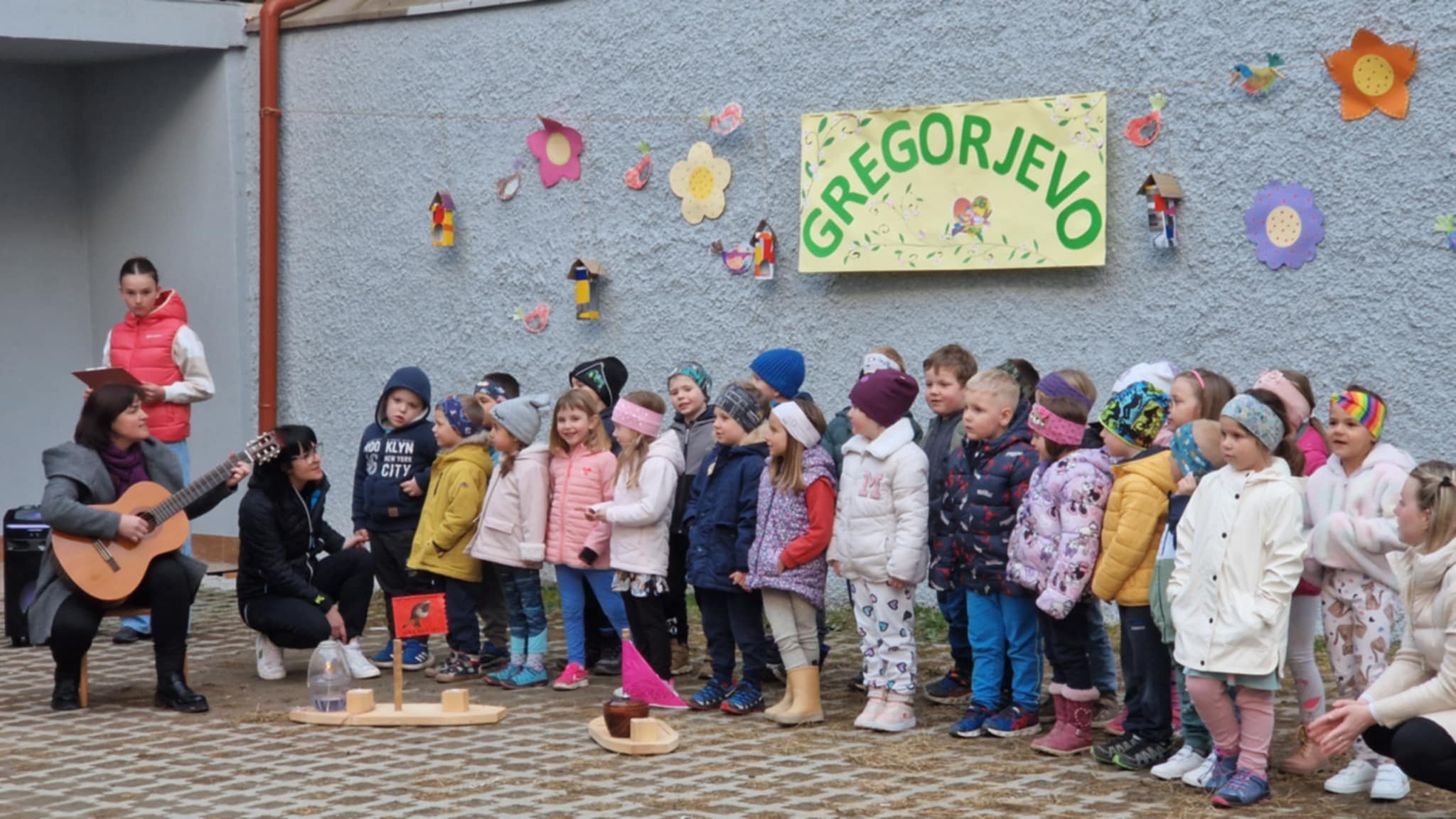 V sklopu kratkega kulturnega programa so zapeli nekaj ljudskih pesmi o ptičkih in barčicah ter tako pričarali pravo praznično vzdušje. Otroci že poznajo staro ljudsko izročilo, da se na Gregorjevo "ptički ženijo", kar pomeni, da narava postopoma prehaja v pomlad in se dnevi daljšajo.