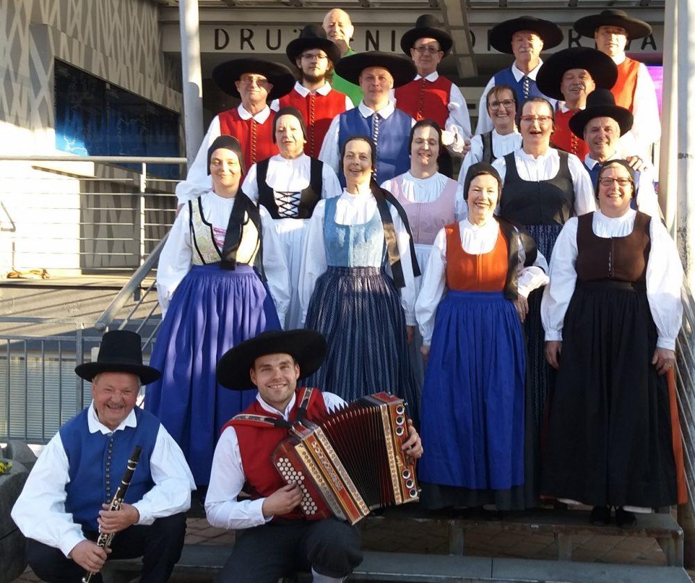Folklorna skupina Prežihov Voranc Ravne na Koroškem, ki deluje že 72 let, se je nam prestavila s spletom, ki je vsem članom pisan na kožo, Mi pa radi rajamo. Avtor koreografije, avtor glasbene priredbe, oblikovalec kostumske podobe in vodja skupine je Peter Šumnik.