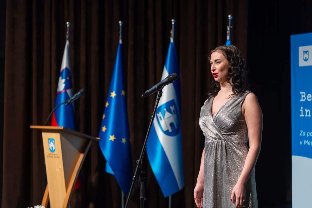 S prelepo barvo glasu je navzoče pobožala imenitna sopranistka Mateja Potočnik, ena izmed najobetavnejših opernih pevk svoje generacije. Na klavirju jo je spremljala pianistka Maja Kastratovik, ki se prav tako ponaša z Bernekerjevo plaketo. Za konec pa je sledila odlična gledališka predstava v izvedbi lanskoletnih dobitnikov Bernekerjeve plakete - Koroškega deželnega teatra.