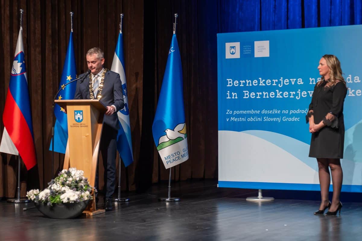 Sledila je podelitev Bernekerjevih plaket in nagrade. Podelila sta jih župan Mestne občine Slovenj Gradec Tilen Klugler in predsednica komisije za izbor nageajencev Marjeta Vaupot.