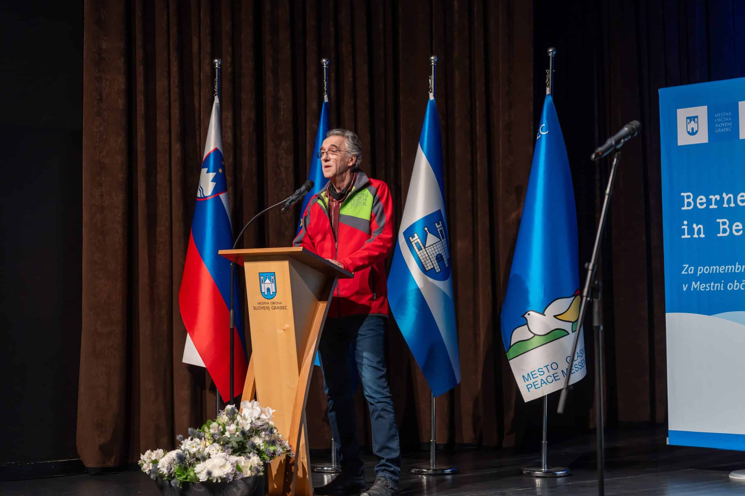 Osrednji slavnostni govornik, ki je spregovoril v imenu lanskoletnih prejemnikov Bernekerjeve nagrade - Gledališkega združenja Koroški deželni teater - je bil gospod Sergej Dolenc.