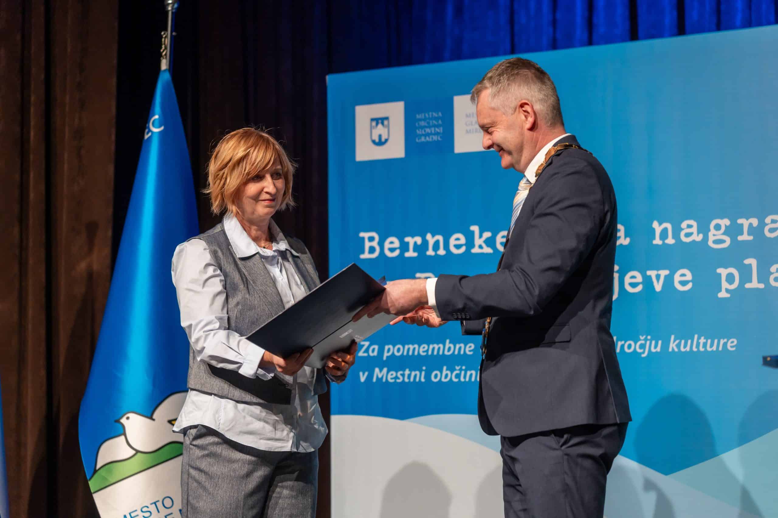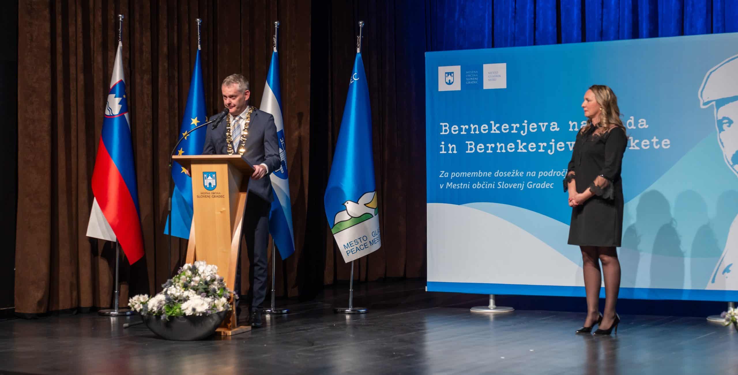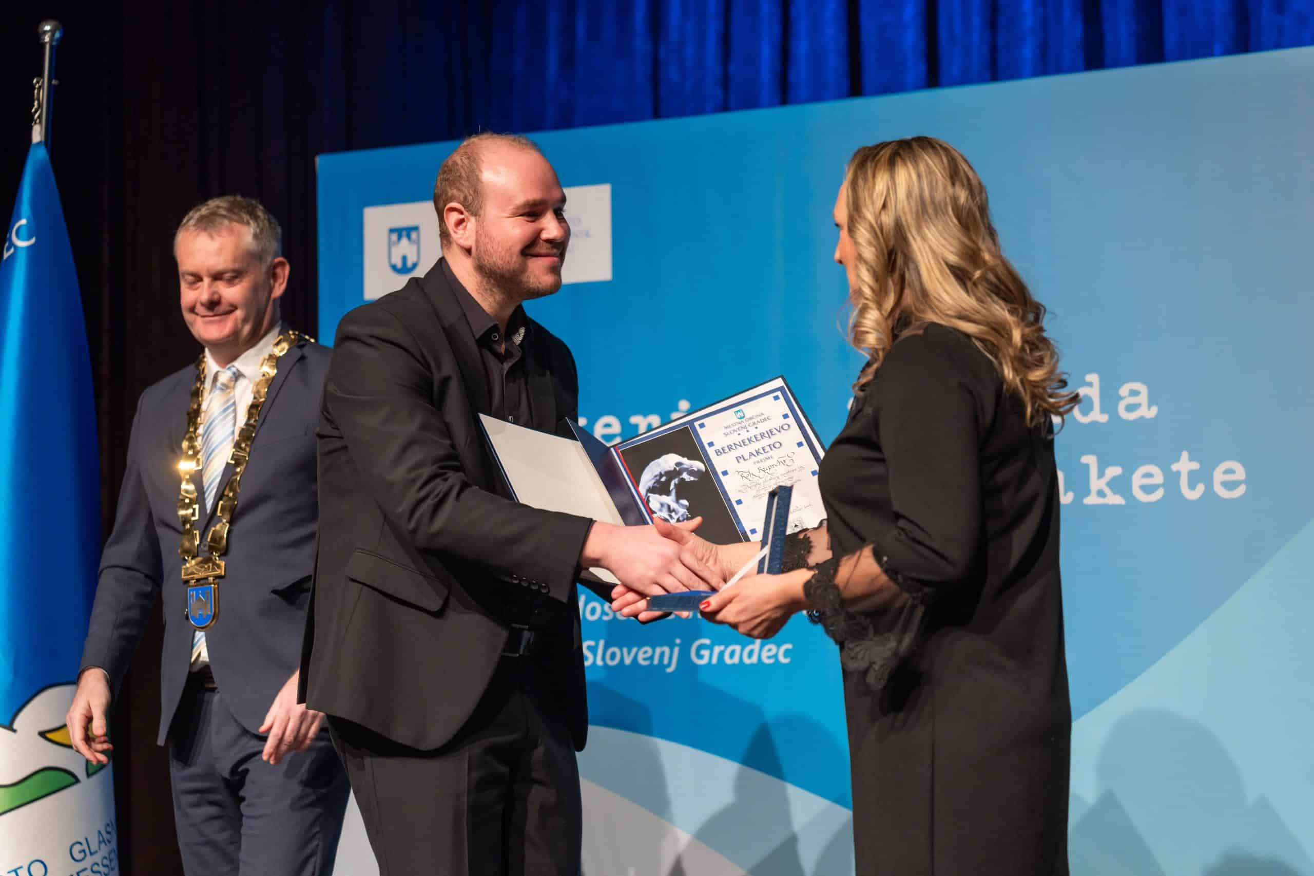 Sledila je podelitev Bernekerjevih plaket in nagrade. Podelila sta jih župan Mestne občine Slovenj Gradec Tilen Klugler in predsednica komisije za izbor nageajencev Marjeta Vaupot.