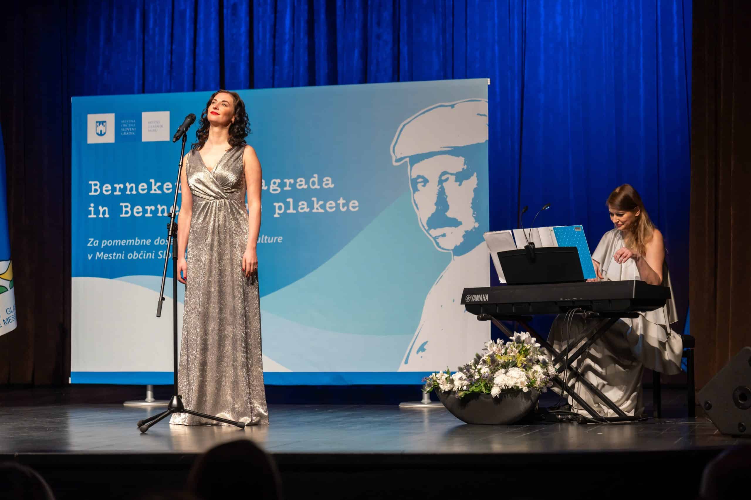 S prelepo barvo glasu je navzoče pobožala imenitna sopranistka Mateja Potočnik, ena izmed najobetavnejših opernih pevk svoje generacije. Na klavirju jo je spremljala pianistka Maja Kastratovik, ki se prav tako ponaša z Bernekerjevo plaketo. Za konec pa je sledila odlična gledališka predstava v izvedbi lanskoletnih dobitnikov Bernekerjeve plakete - Koroškega deželnega teatra.