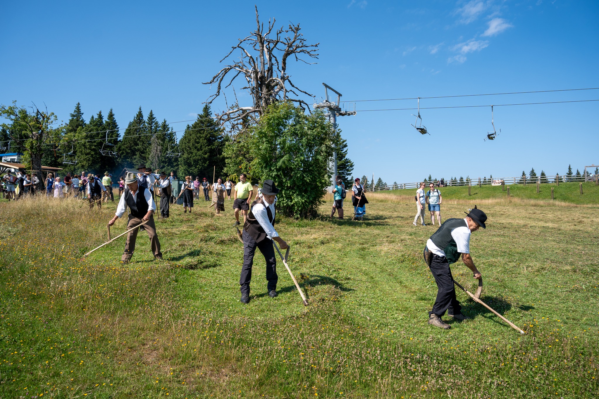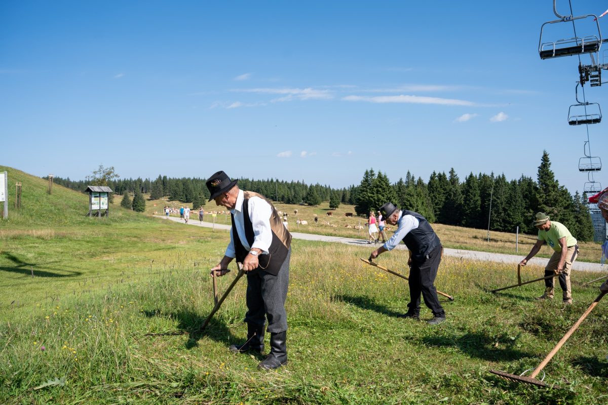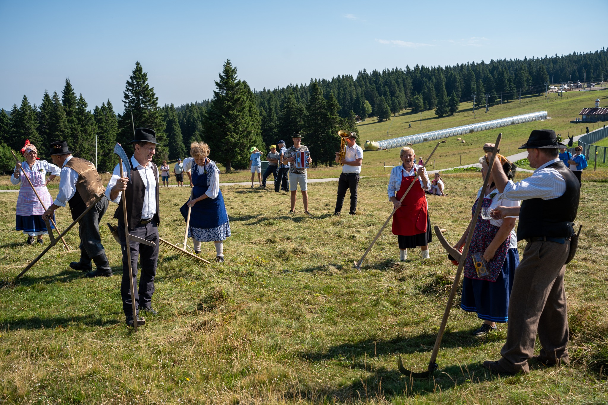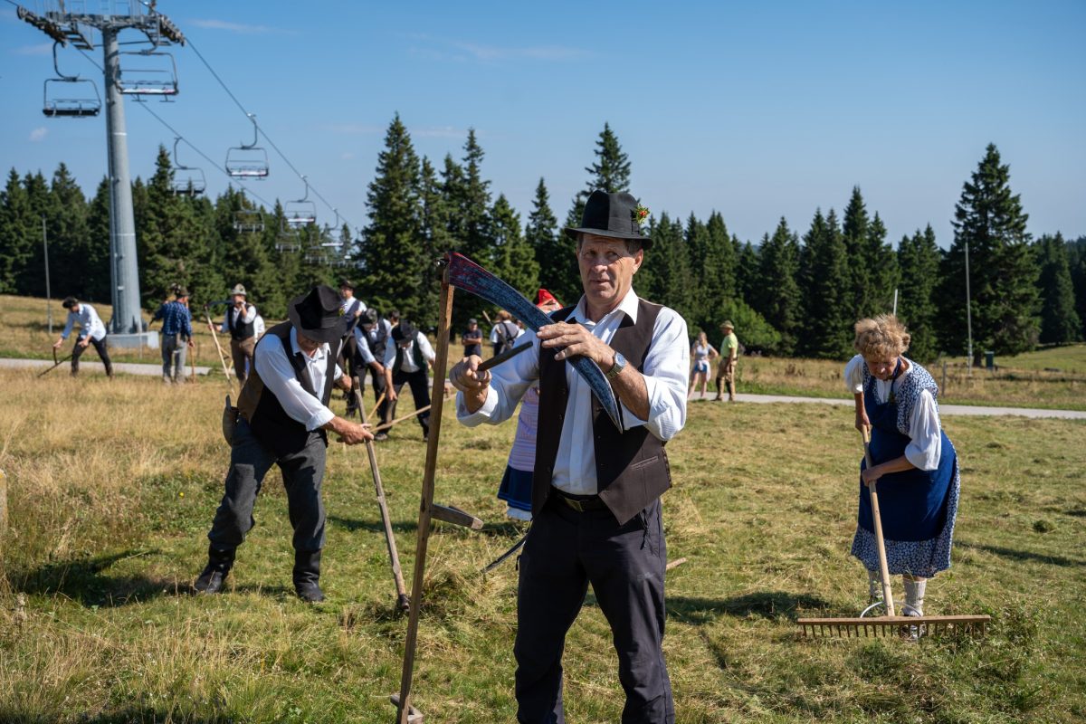 Danes, 10. avgusta, ste lahko na Rogli opazovali prikaz košnje po starem.