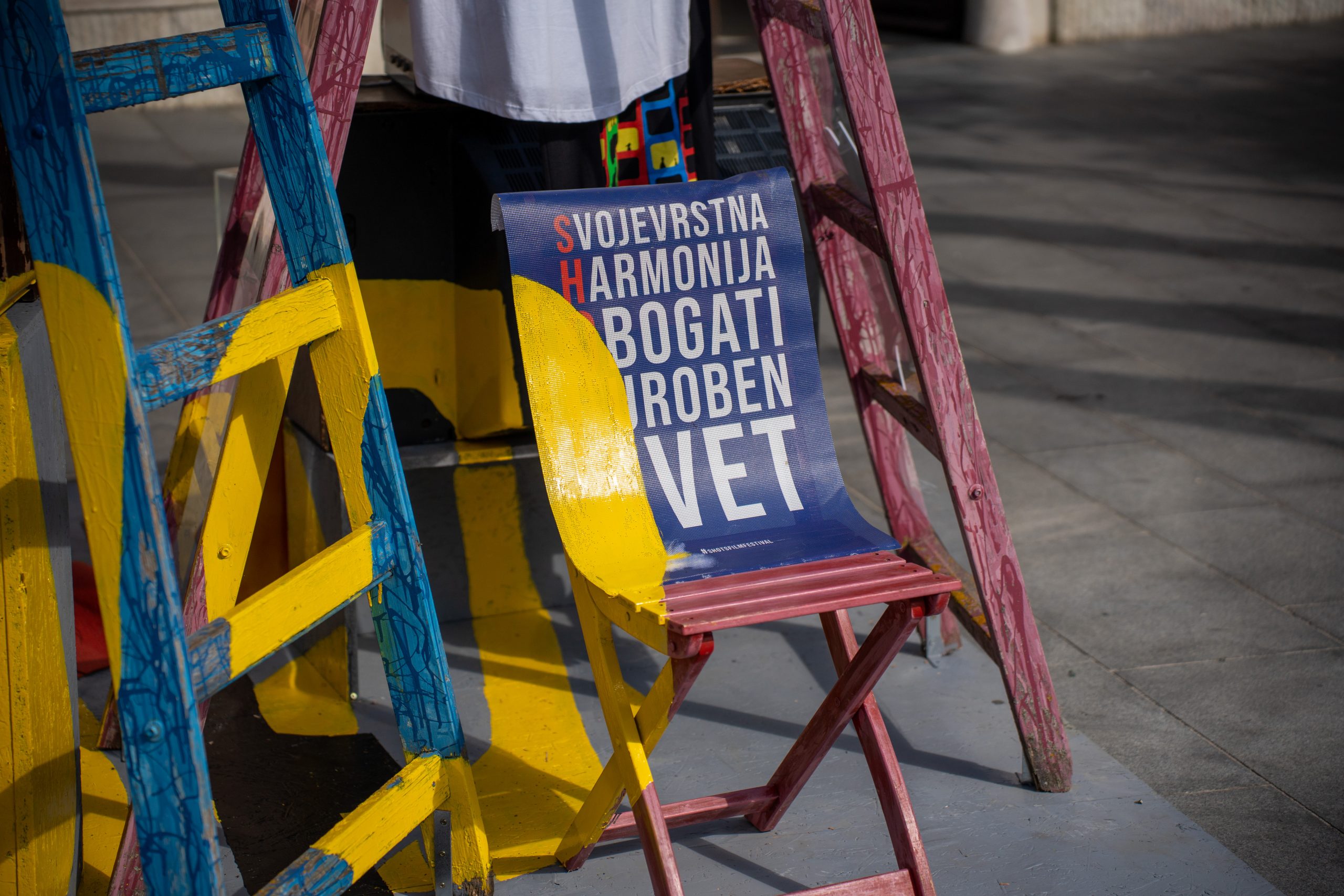 "Po mestnem so različne talne nalepke, ki nas spomnejo na to, da smo bili kar petkrat uvrščeni med sto najbolje ocenjenih filmskih festivalov na svetu. Zapisane so izjave avtorjev, ki so v preteklih letih bili na festivalu SHOTS," je uvodoma povedal Tomo Novosel.
