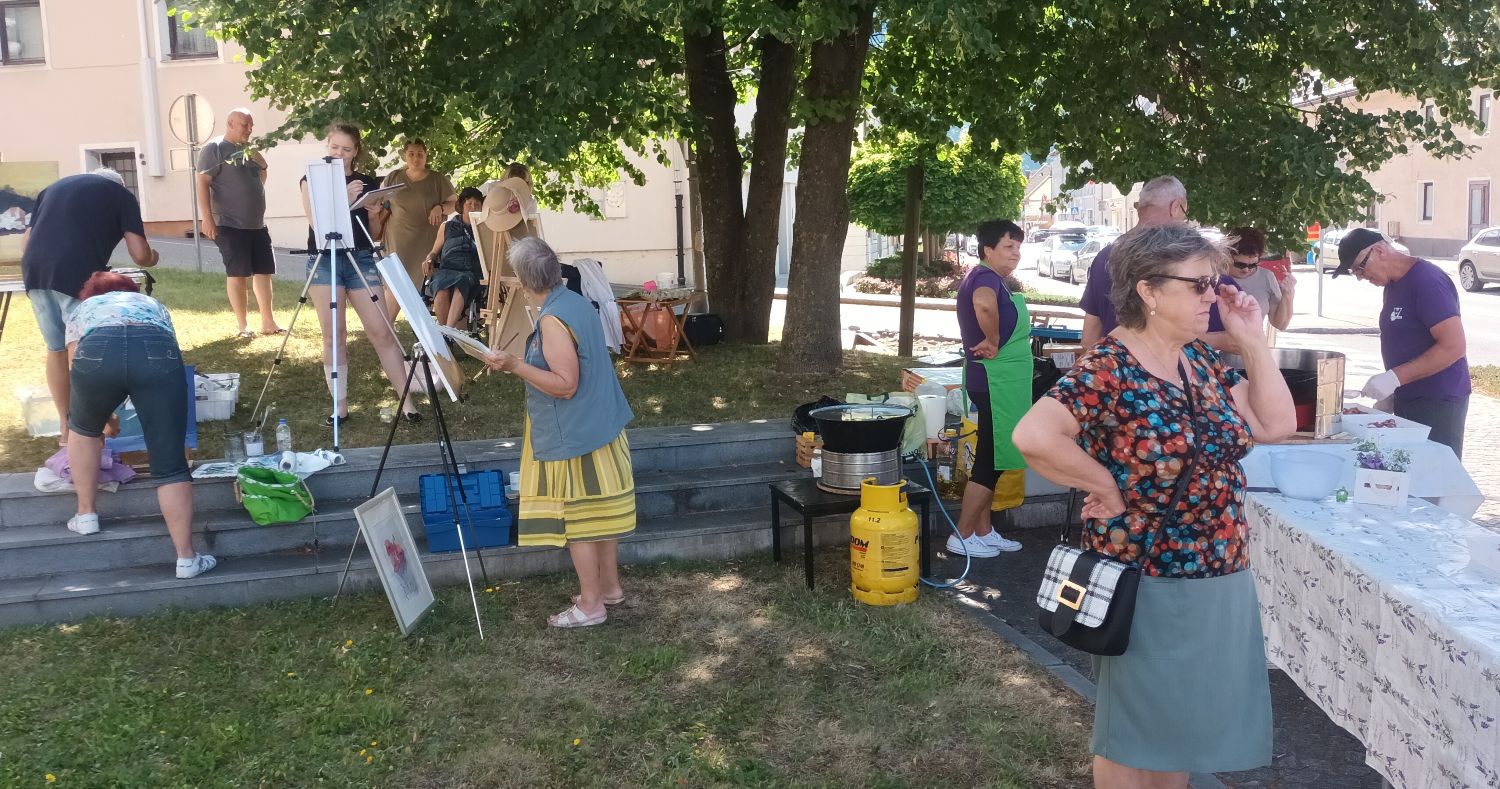 V soboto, 27. junija, je dopoldan od 9.00 do 12.00 ure pred Cerkvijo sv. Vida znova bilo živahno, saj je likovna sekcija KD Dravograd v okviru občinskega praznika pripravila Dan odprtih vrat.