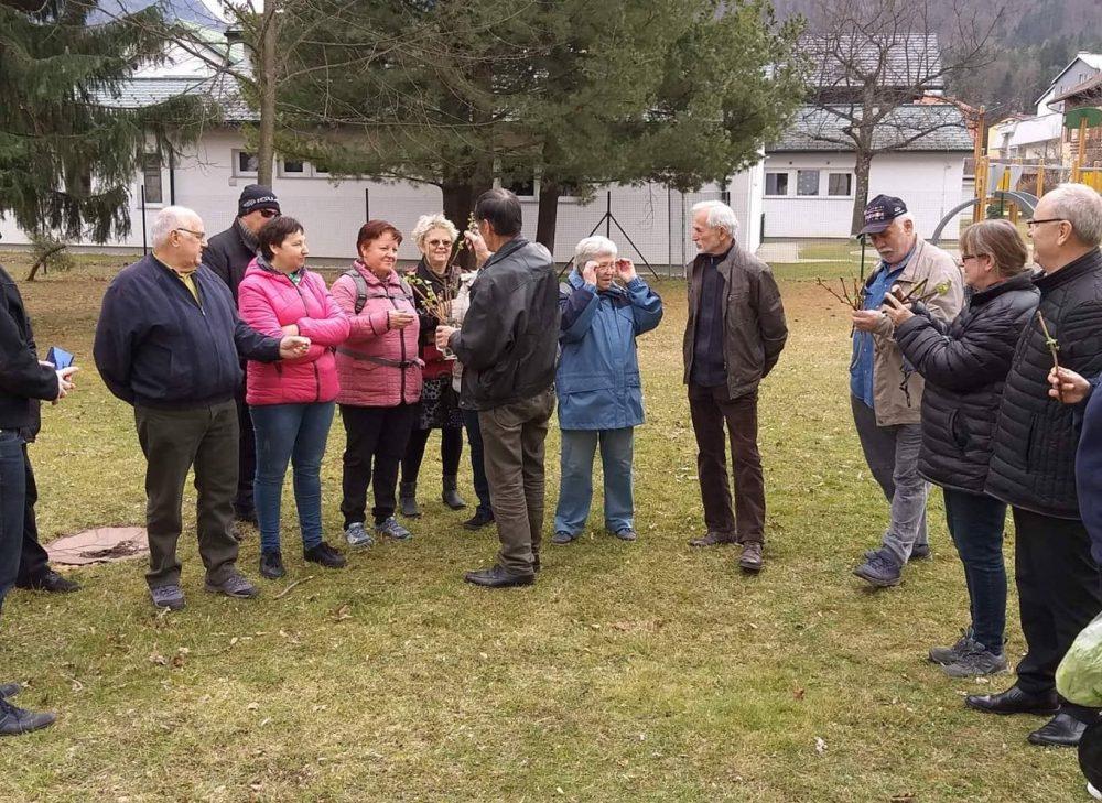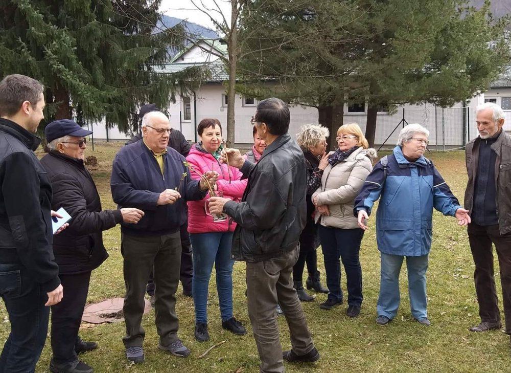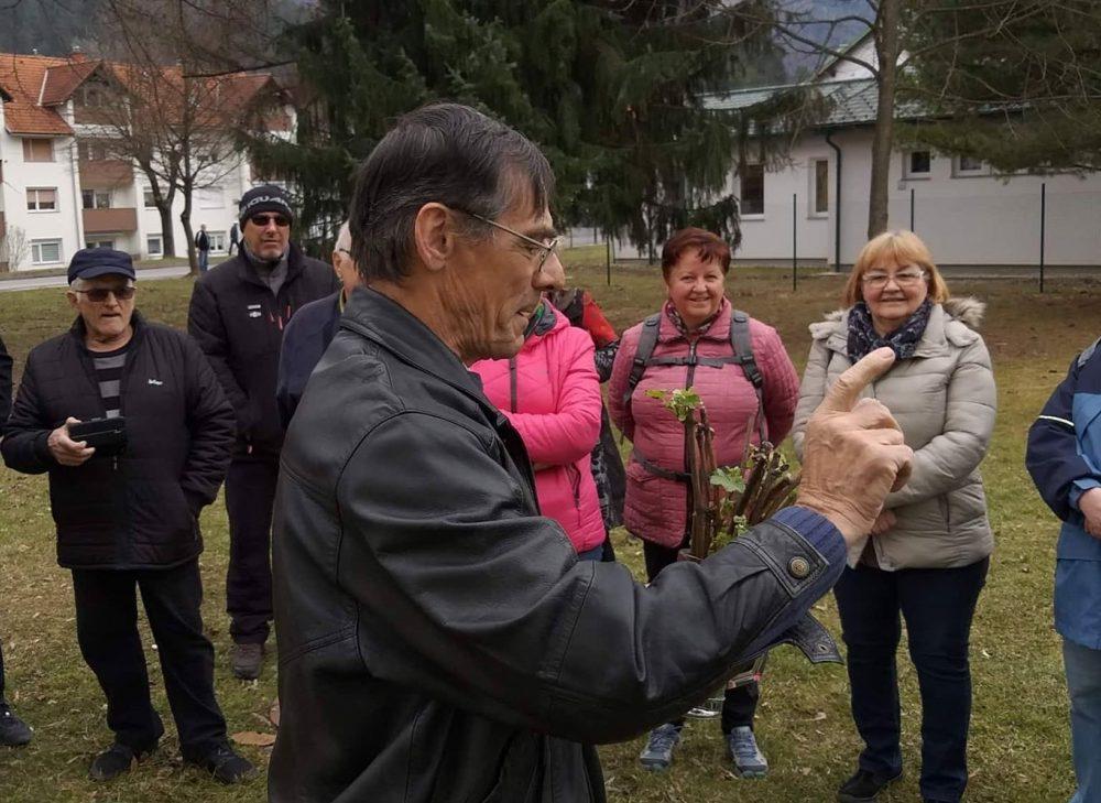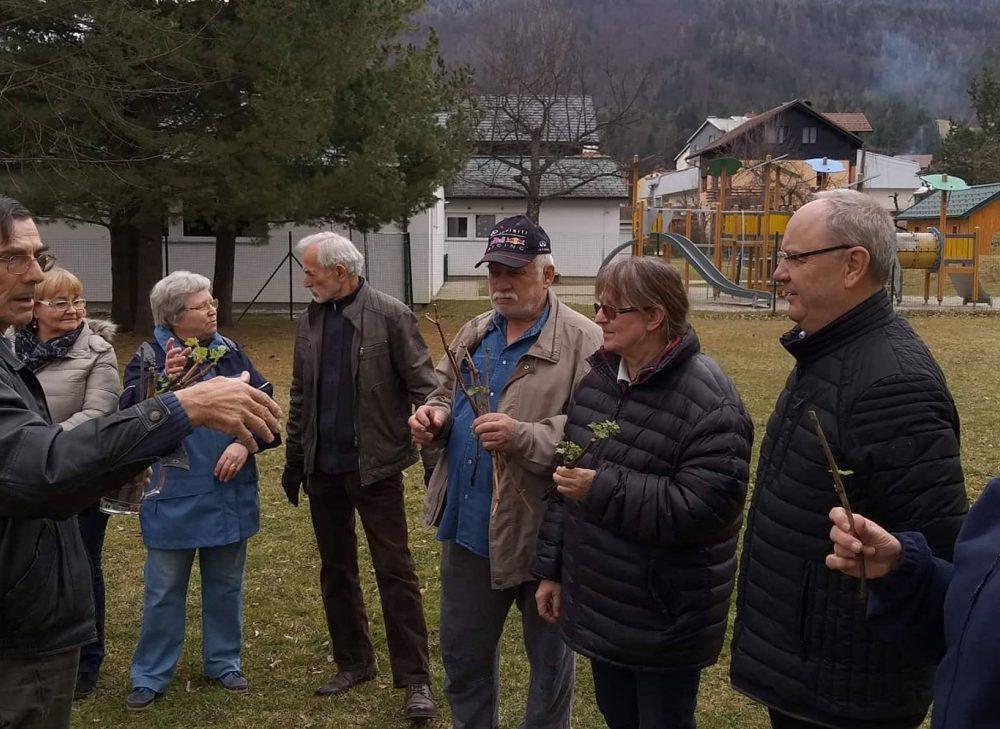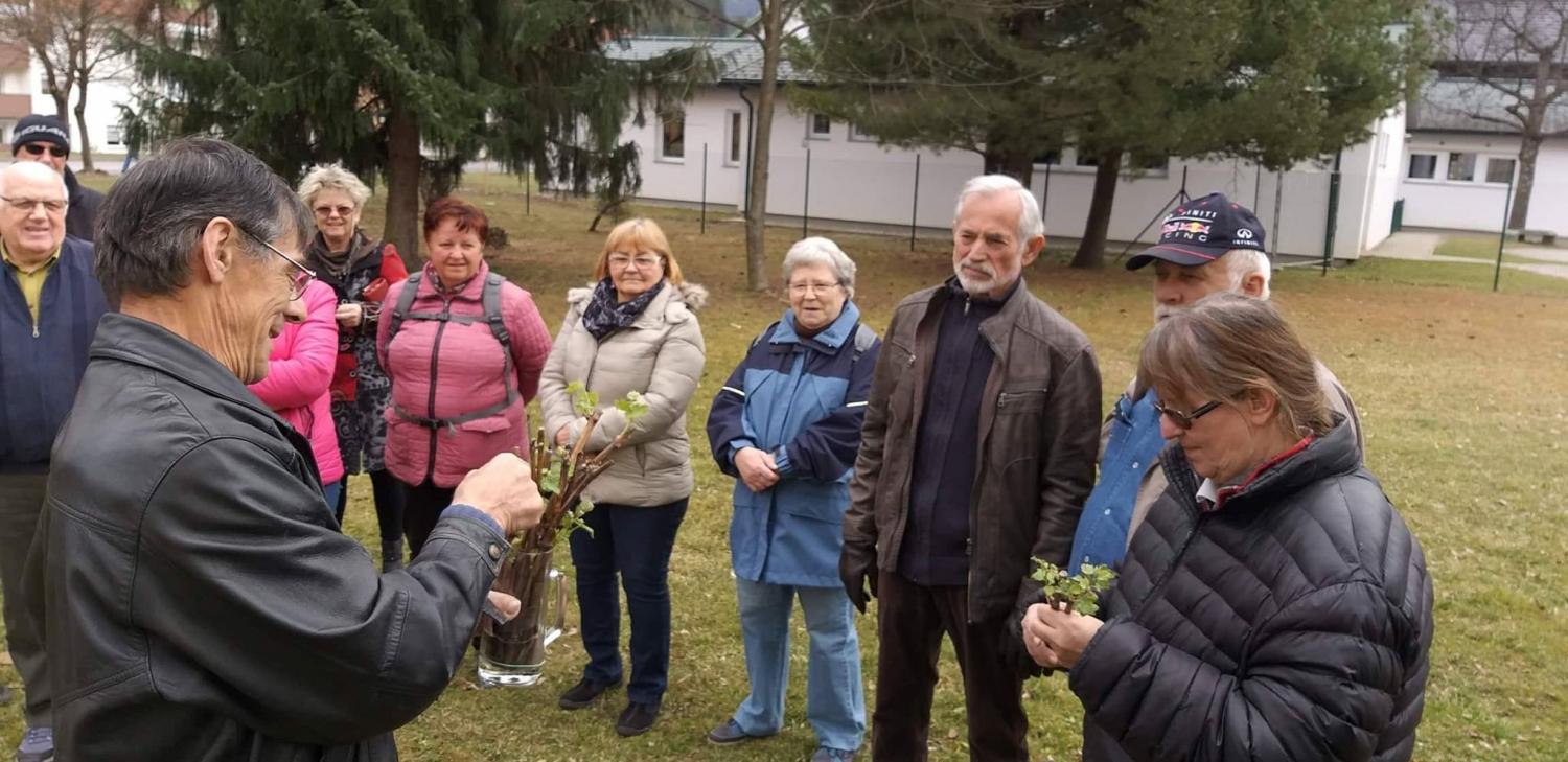 Nakar smo pred Bargetovo vilo prisluhnili Florijanu, ki je ob igranju na harmoniko tudi zapel. Sledil je tradicionalni rez trte ter simbolična predaja cepičev navzočim obiskovalcem.