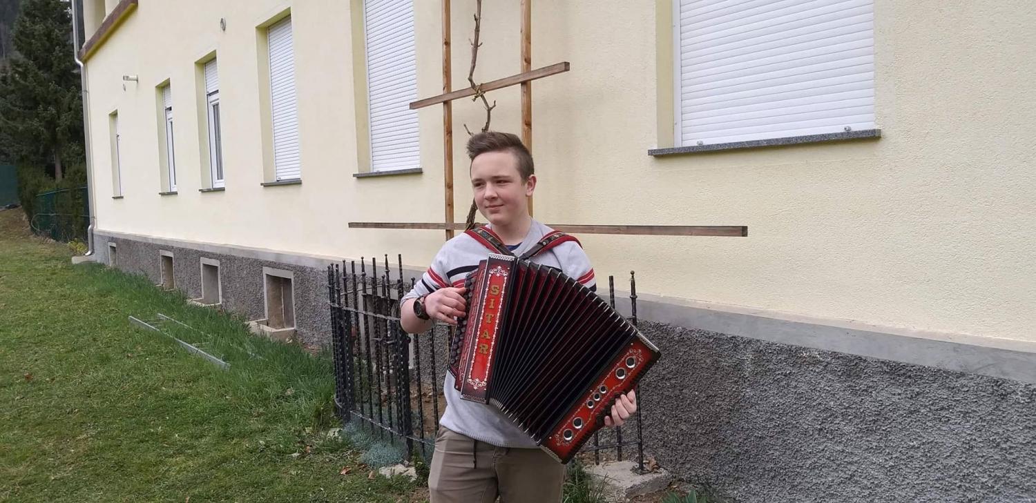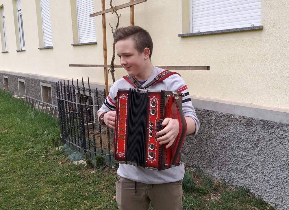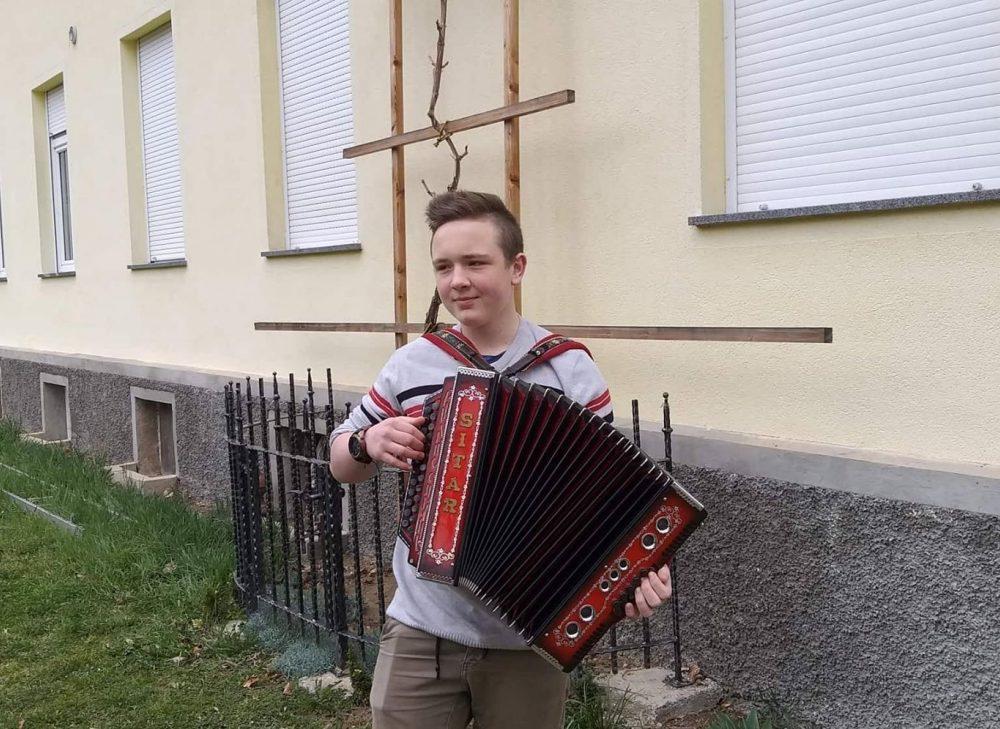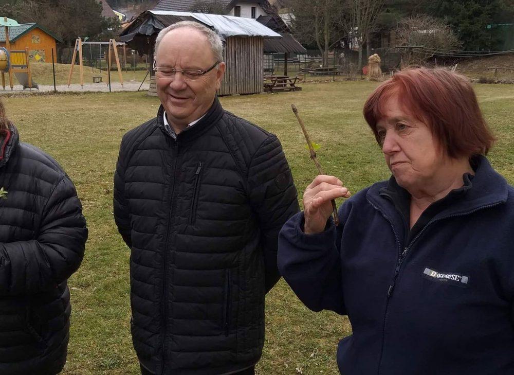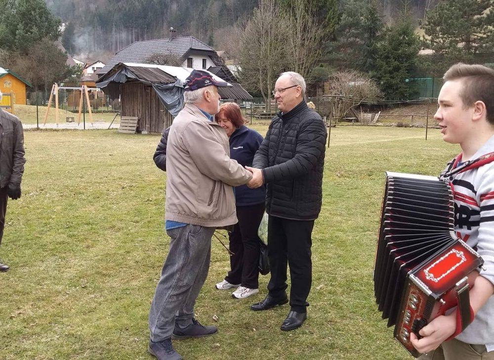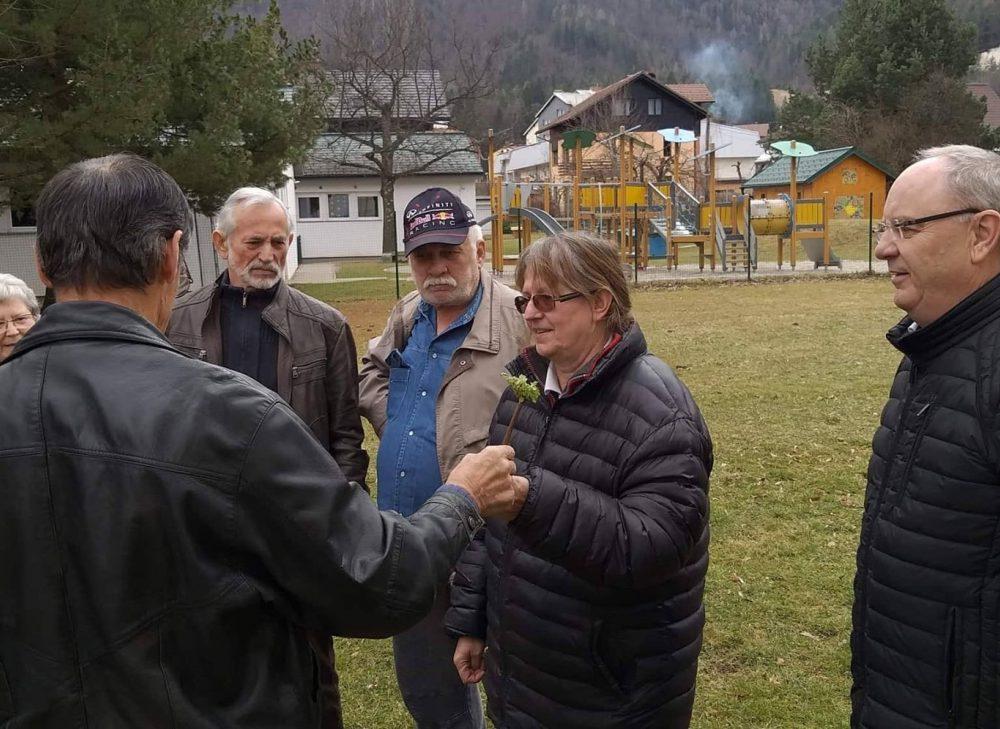 Nakar smo pred Bargetovo vilo prisluhnili Florijanu, ki je ob igranju na harmoniko tudi zapel. Sledil je tradicionalni rez trte ter simbolična predaja cepičev navzočim obiskovalcem.