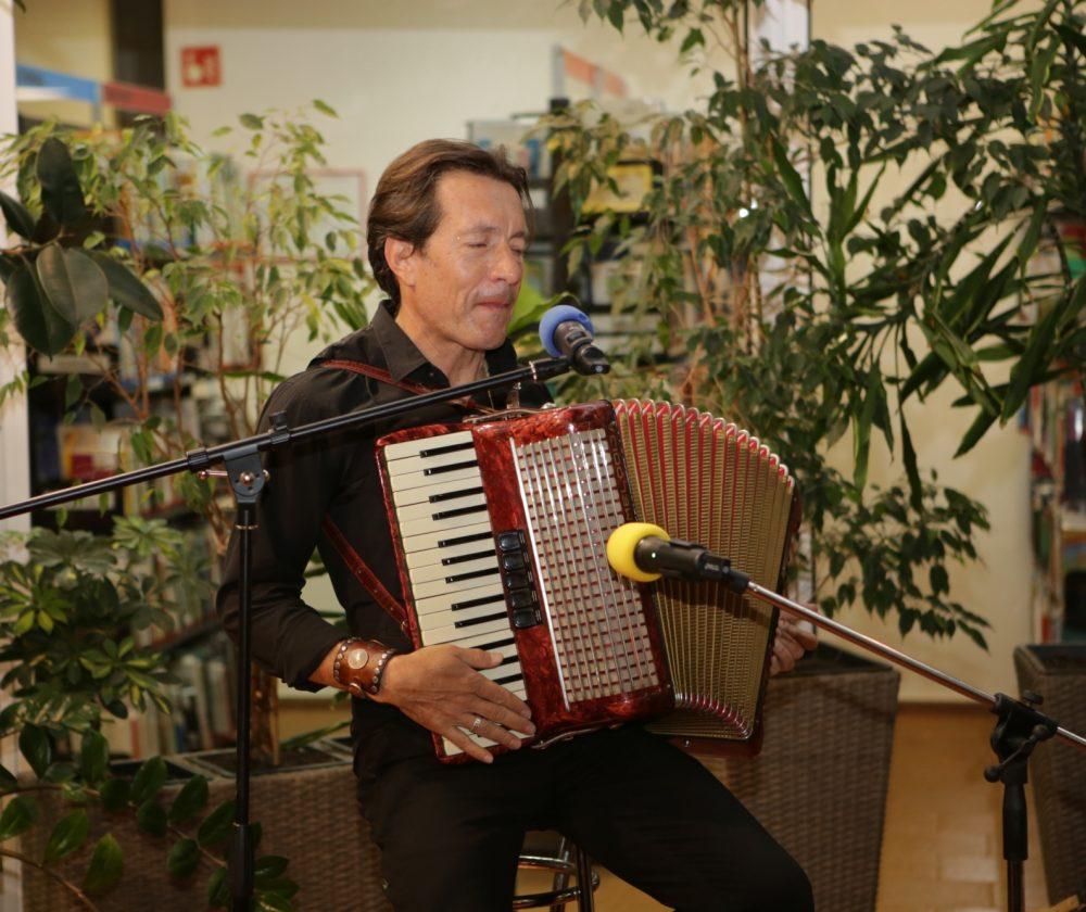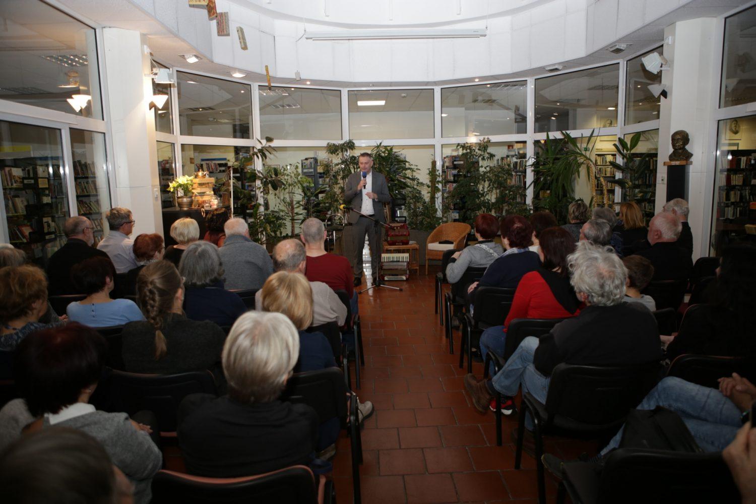 Odprtje novih prostorov Knjižnice Ksaverja Meška Slovenj Gradec je z literarno-glasbenim nastopom pospremil Matjaža Pikalo, ki je predstavil knjigo pesmi Morje, morje, morje.