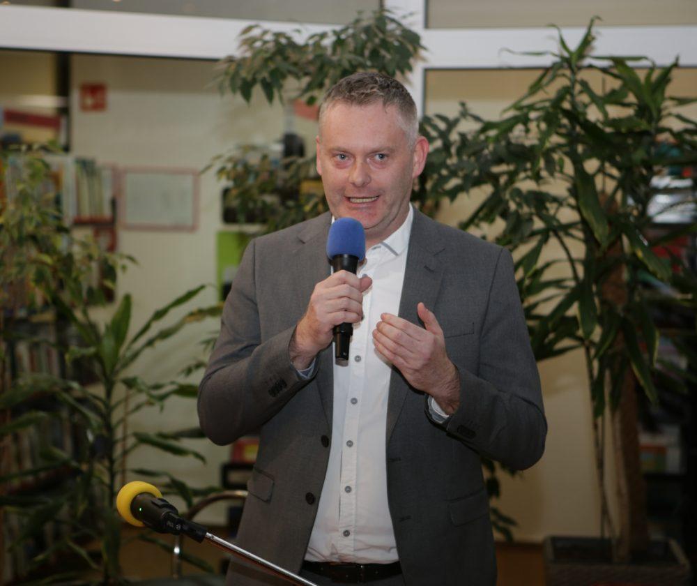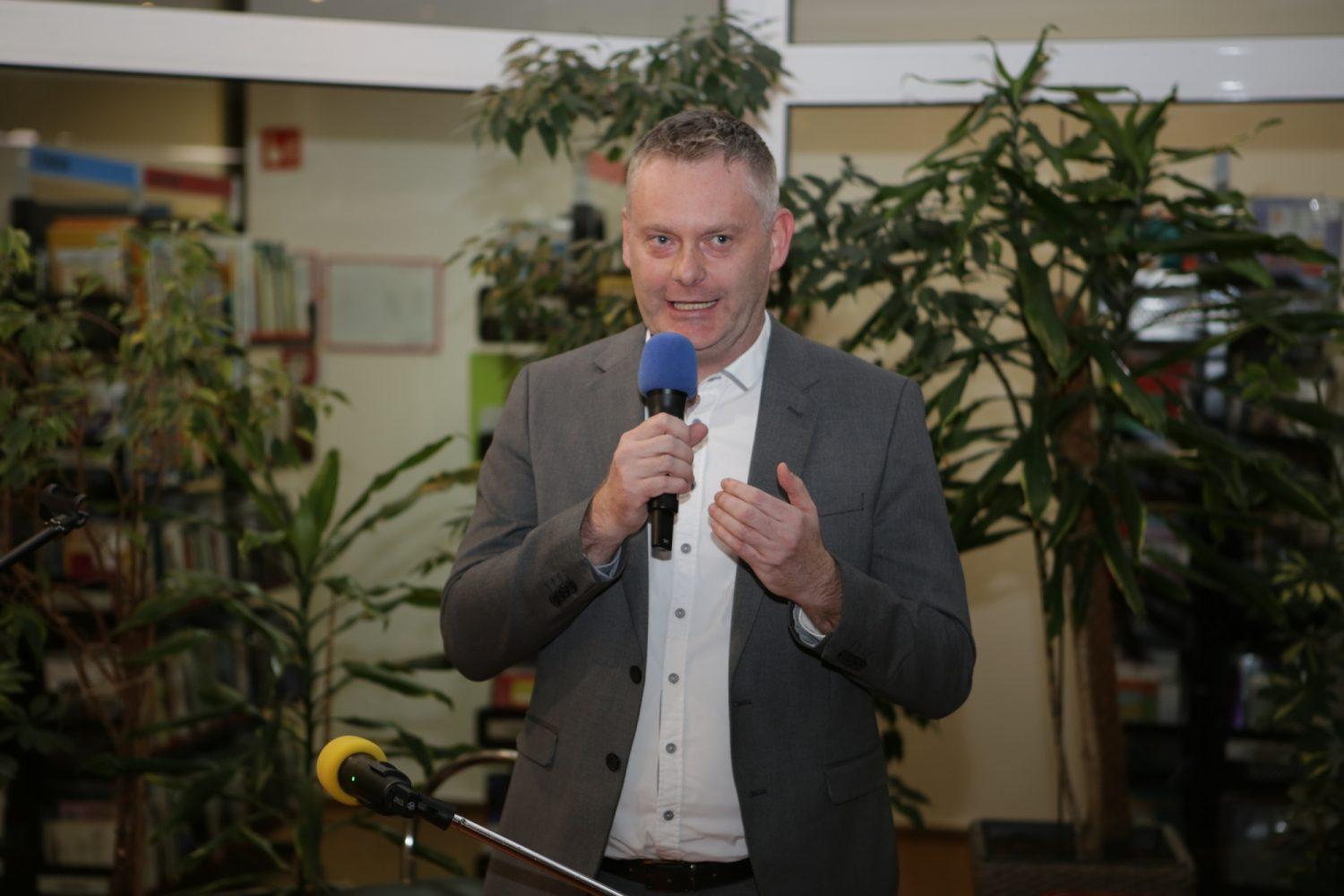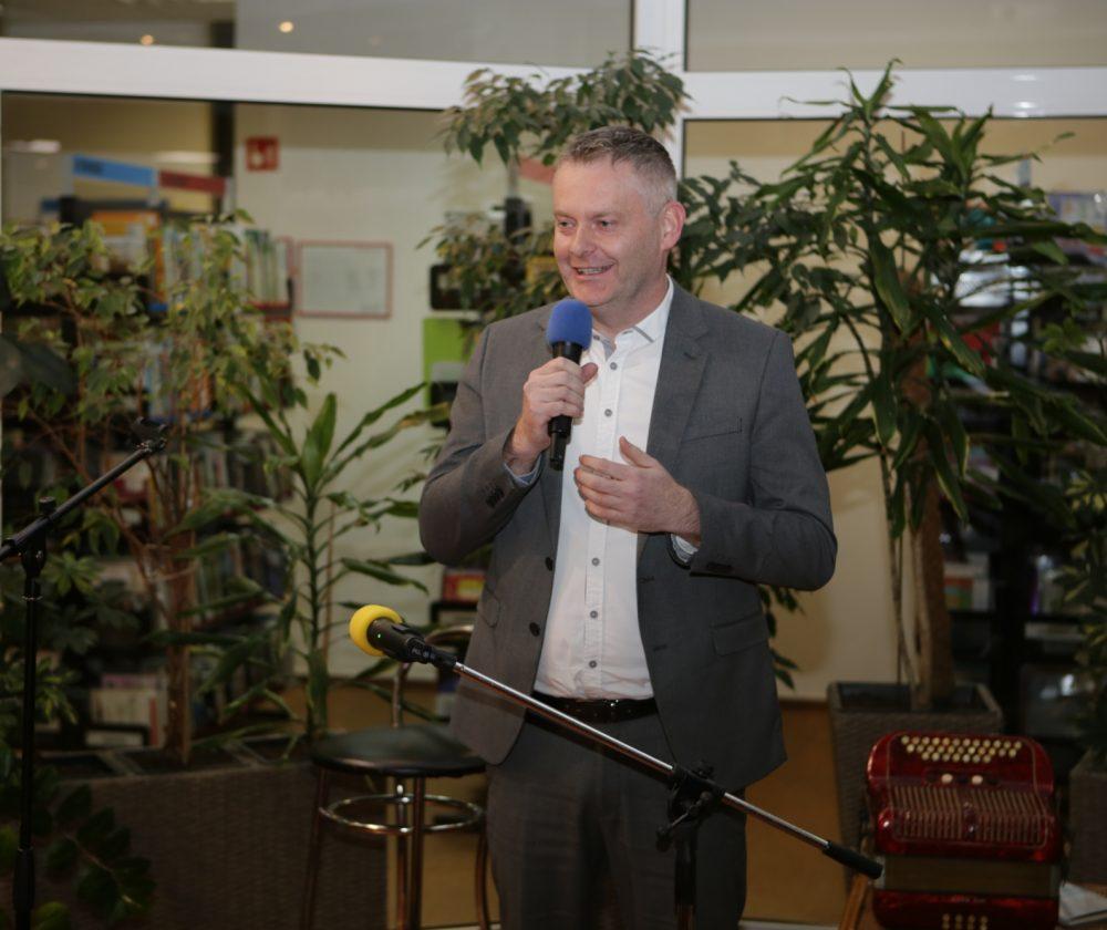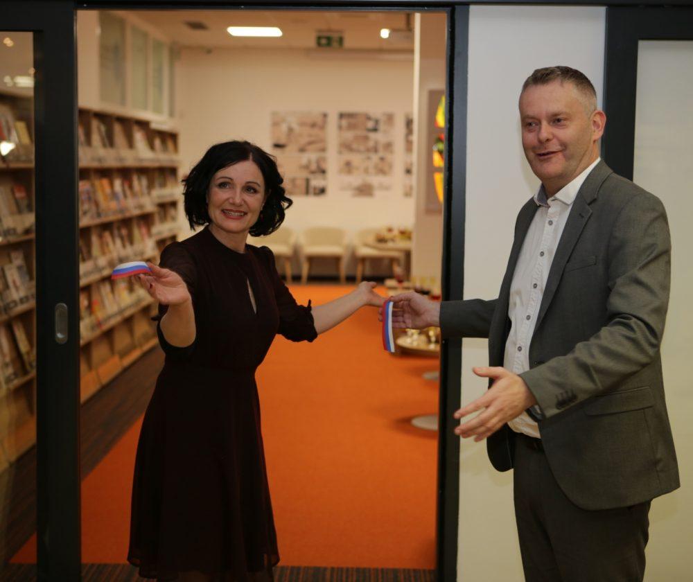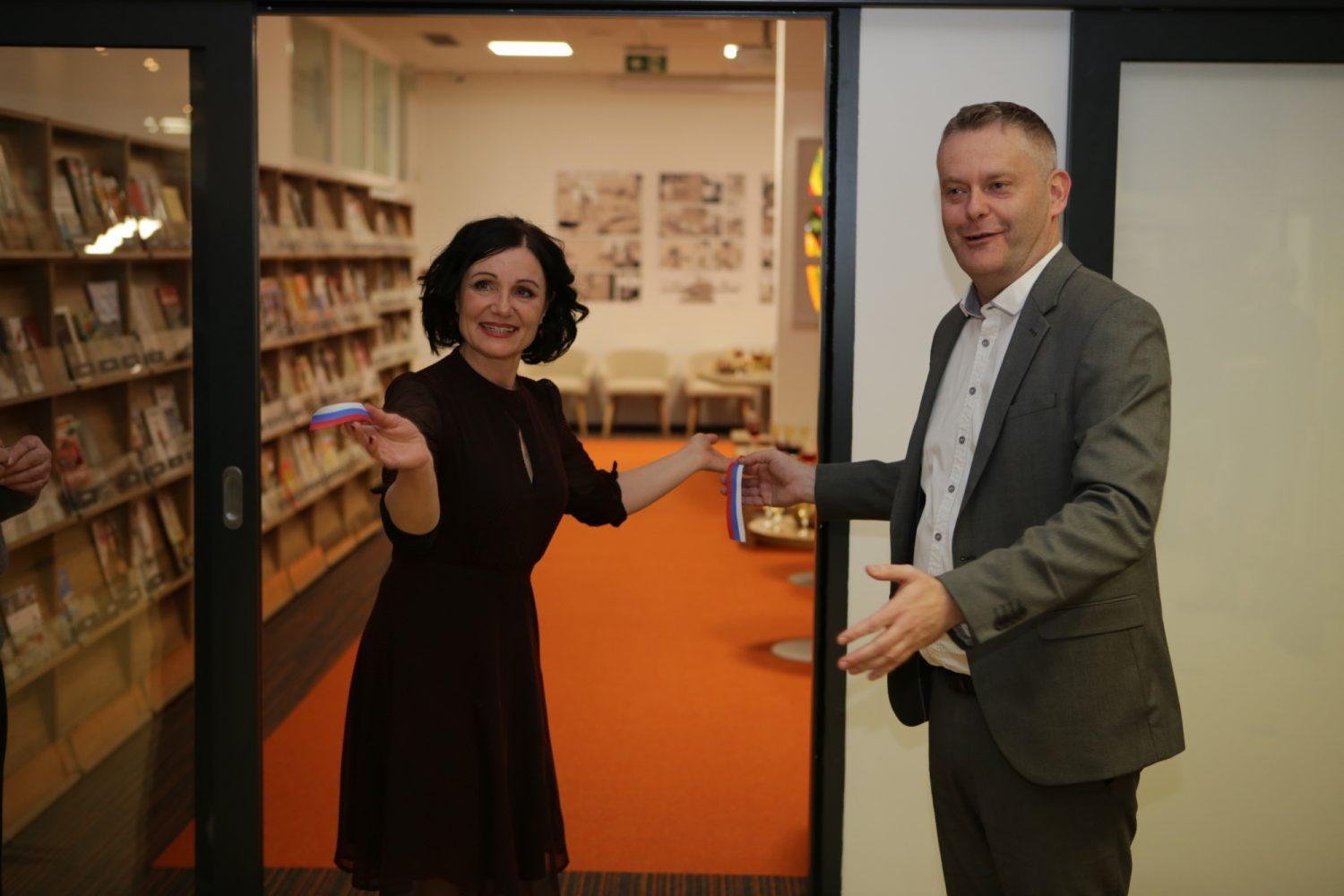 Direktorica knjižnice Draga Ropič je nagovorila zbrane in poudarila kako vesela je, da so prav oni dobili priložnost razširiti prostore knjižnice. Zahvalila se je Mestni občini Slovenj Gradec, tudi prejšnjemu županu Andreju Času in aktualnemu županu Tilnu Kluglerju in vsem, ki so kakorkoli pomagali pri projektu.