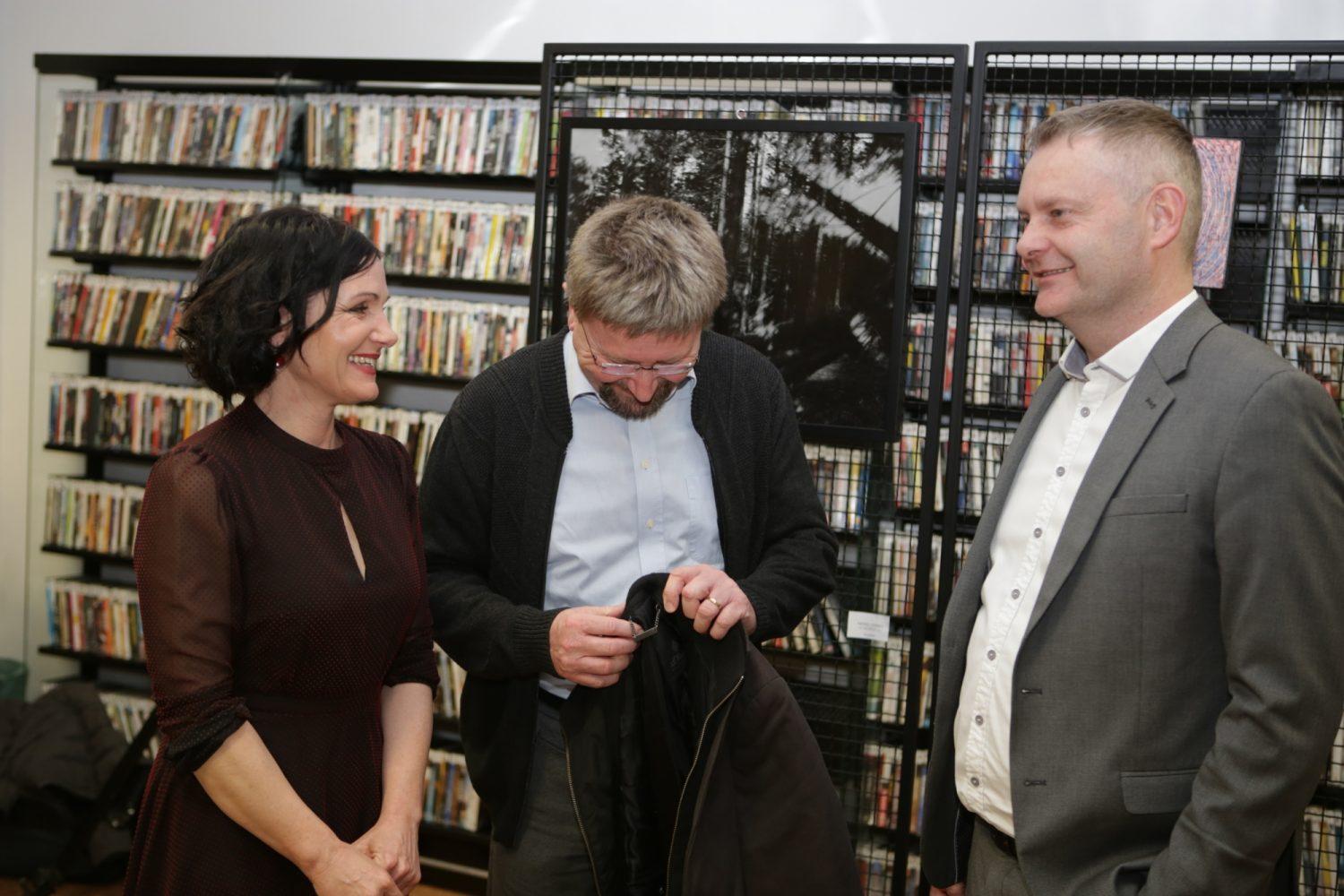Danes so v Knjižnici Ksaverja Meška v Slovenj Gradcu slavnostno otvorili nove prostore. Večer je med drugim polepšal literarno glasbeni nastop Matjaža Pikala. Prisotne pa je med drugim nagovoril tudi župan MO Slovenj Gradec Tilen Klugler.