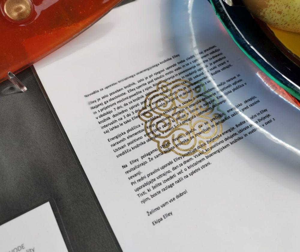 V krožnike, ki so jih poimenovali Elley je, kot pravijo, vložena posebna energija. Vsak posebej je ročno izdelan in dokončno oblikovan v talilni peči. Narejen je iz najbolj čistega kristalnega stekla v določeni kombinaciji oblik, barv, likov in simbolov, podprtih z radiestezijskimi meritvami.
