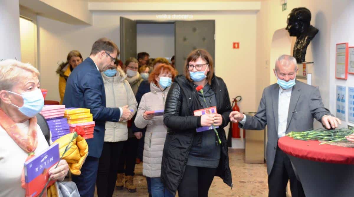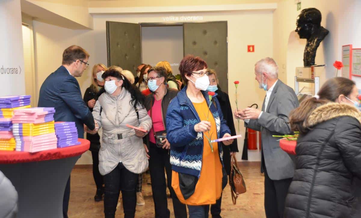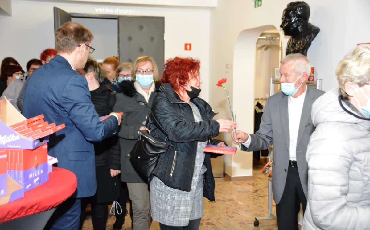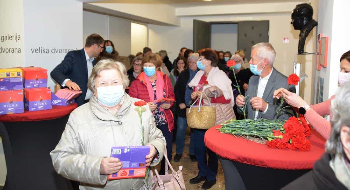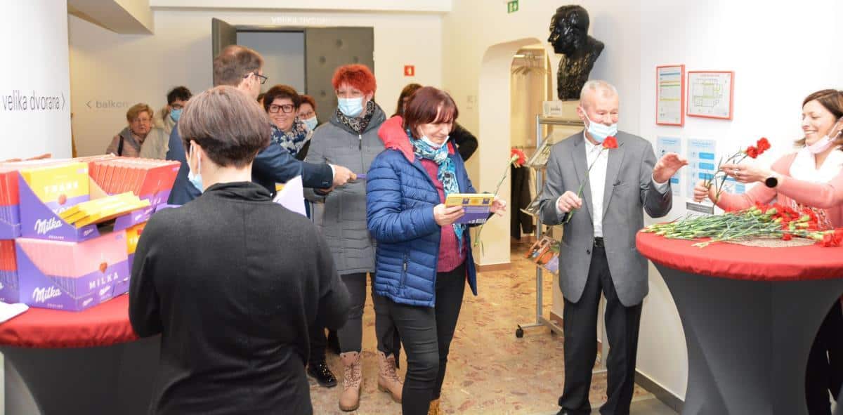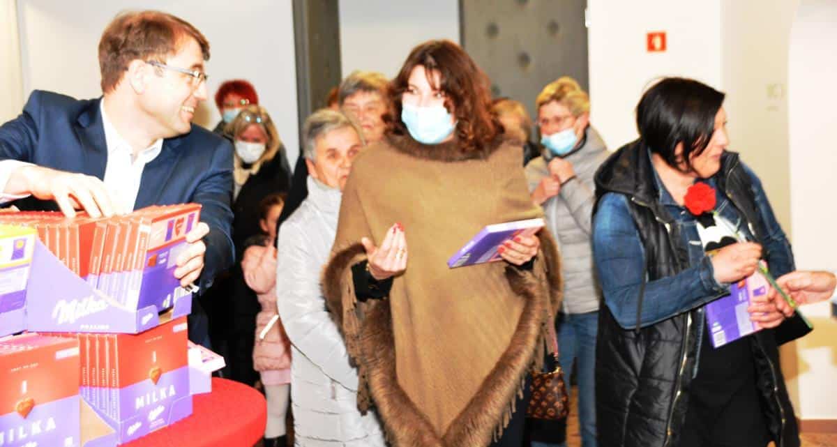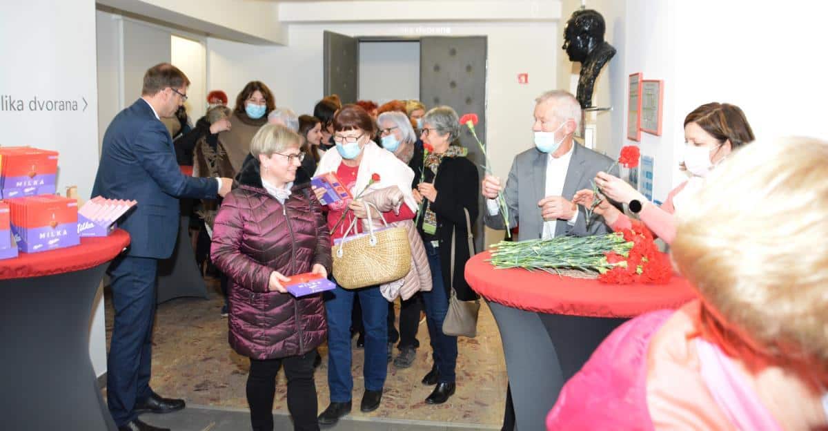 V avli kulturnega doma je obiskovalke čakalo sladko presenečenje, ki ga jim je podelil župan sam in rdeč nagelj, ki so ga prejele iz rok predsednika Društva upokojencev Jožeta Prednika.