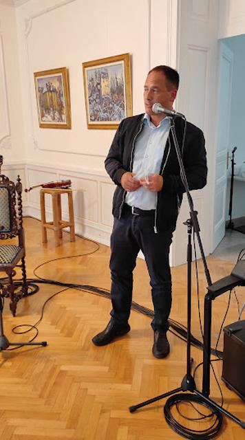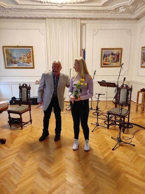 Pogovor z njim je moderiral Robert Preglau, za glasbene predahe pa so poskrbeli Danaja Grebenc in glasbena skupina Rute.