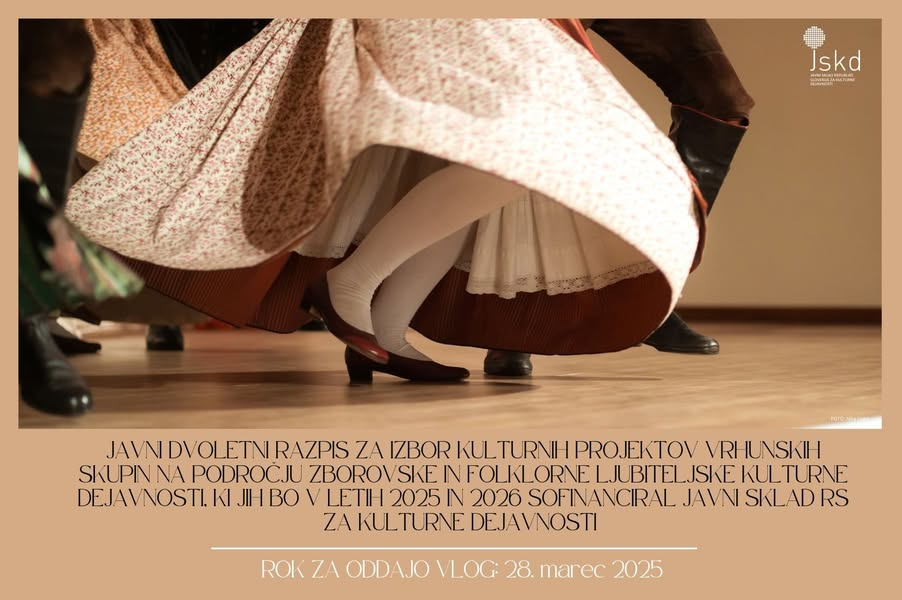Javni sklad RS za kulturne dejavnosti je objavil dvoletni razpis za izbor kulturnih projektov vrhunskih skupin na področju zborovske in folklorne ljubiteljske kulture, ki jih bo sofinanciral v letih 2025 in 2026.
