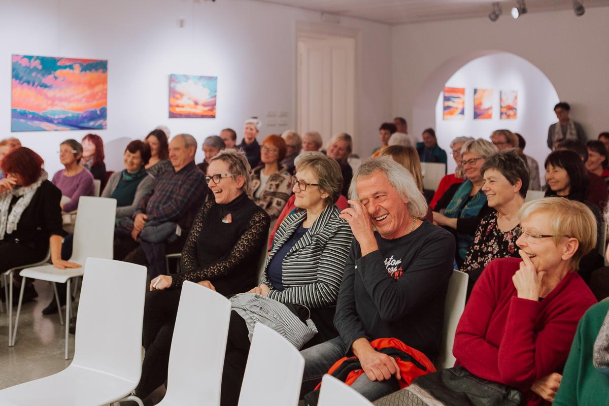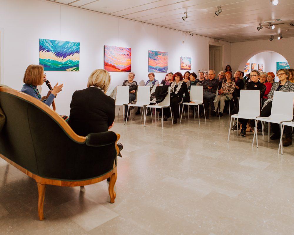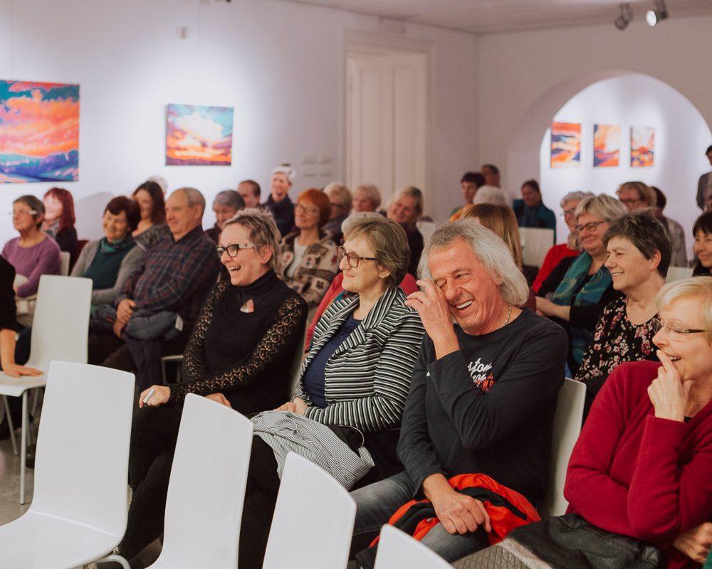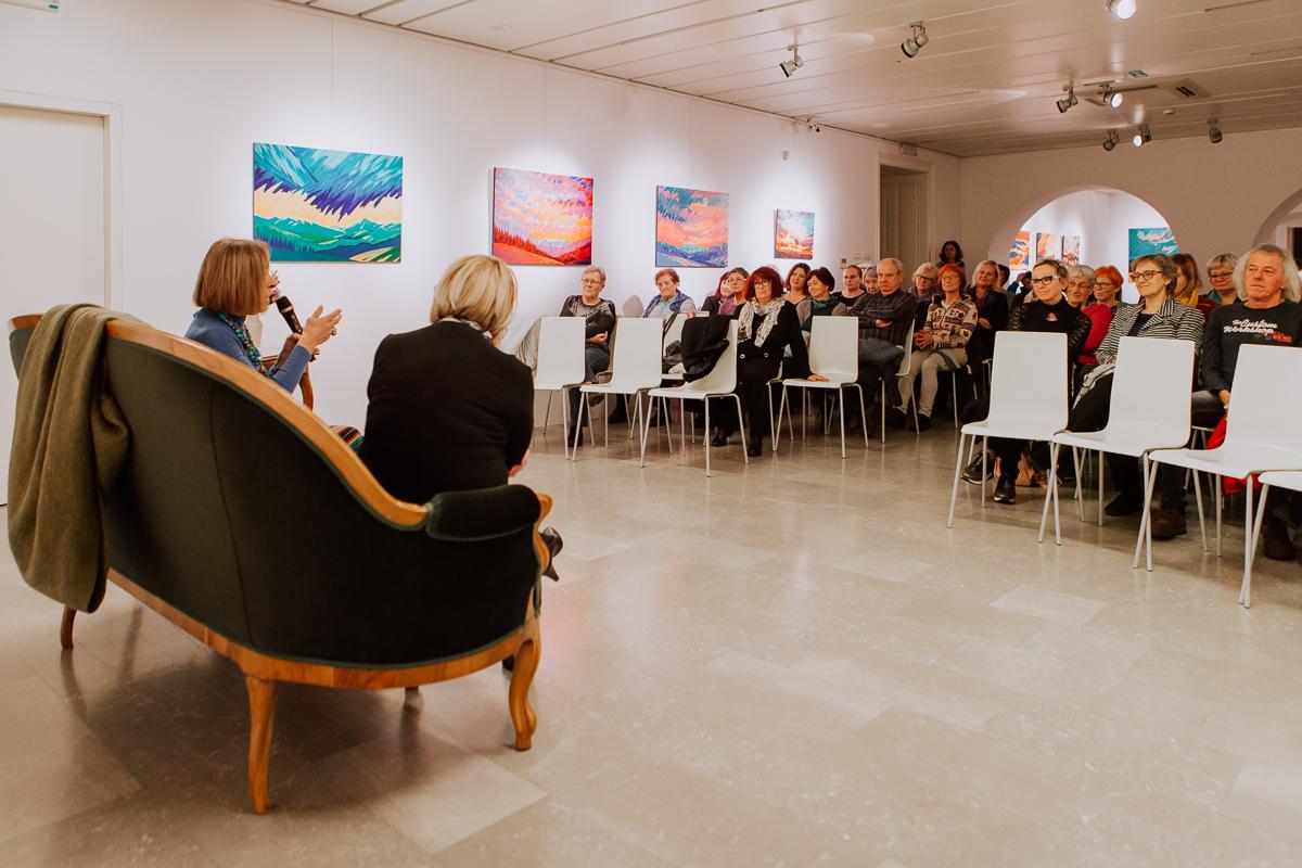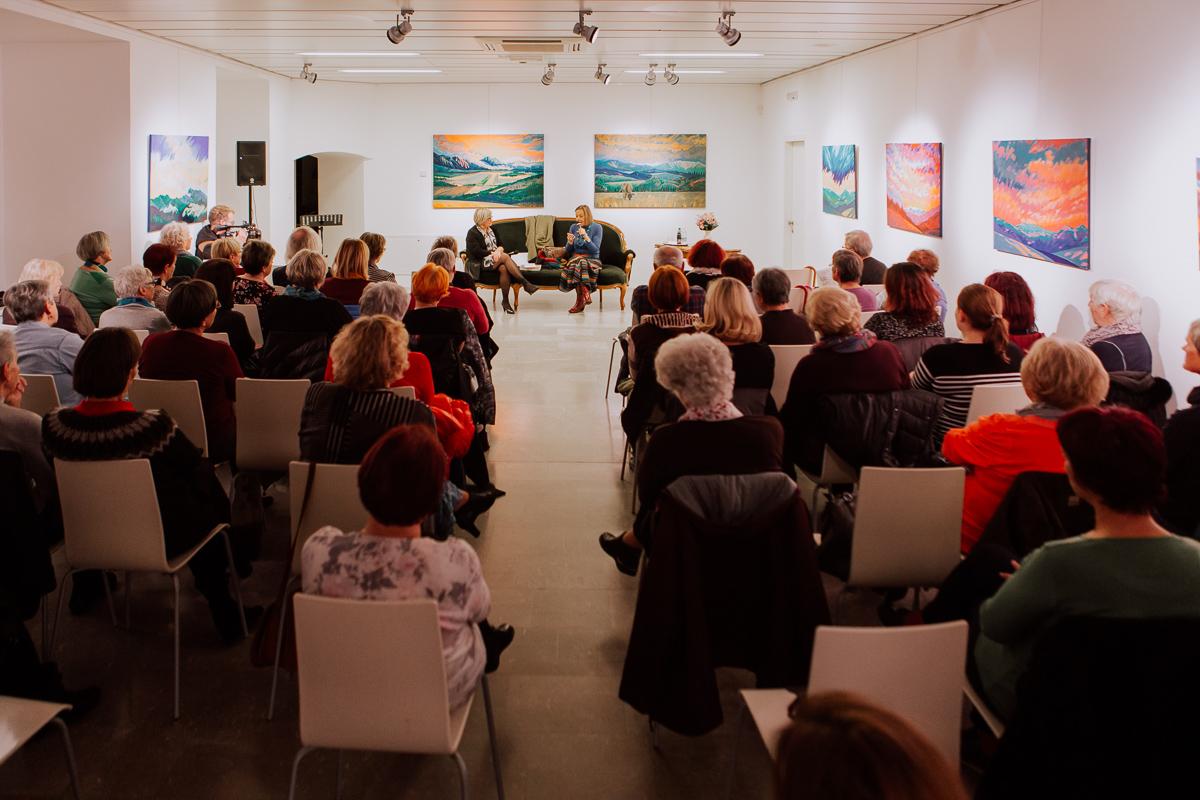 V sproščenem pogovoru z Ireno Oder je igralka povedala marsikaj zanimivega iz svojega življenja, še več pa o svojih bogatih izkušnjah v igralskem poklicu, v katerem se ji je dogodilo marsikaj, kar je gledalce nasmejalo tudi do solz. Večer je z glasbo popestril koroški saksofonist Gregor Šteharnik.