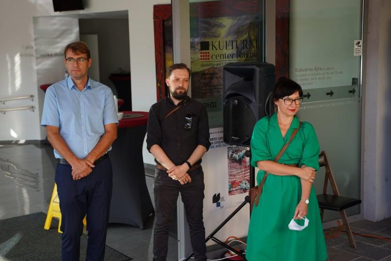 V Galeriji Ravne je popoldne potekalo tudi odprtje razstave Mita Gegiča Mi gremo Drugam. Na razstavi si lahko v posebni tehniki, ki jo je umetnik razvil sam in je postala prepoznavni znak njegovega ustvarjanja, ogledate devet del. Več o razstavi si lahko preberete tukaj.