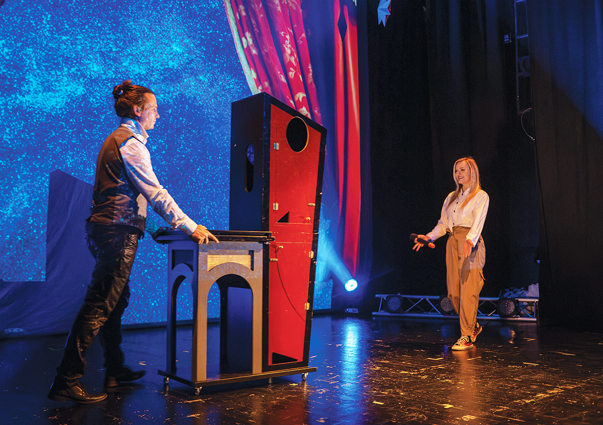 Otroška predstava z elementi akrobatike, žongliranja in čarovniških iluzij.