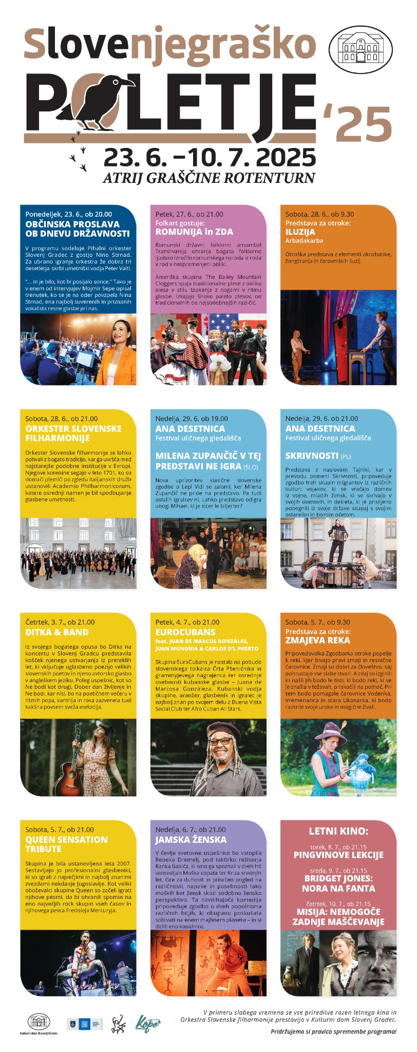 Prvi poletni mesec bo v Kulturnem domu Slovenj Gradec postregel s pestrim kino programom, prav tako pa se bodo v juniju začele že aktivnosti in dogodki Slovenjegraškega poletja, ki bo poskrbelo za dogodke, v katerih bodo uživale čisto vse generacije.