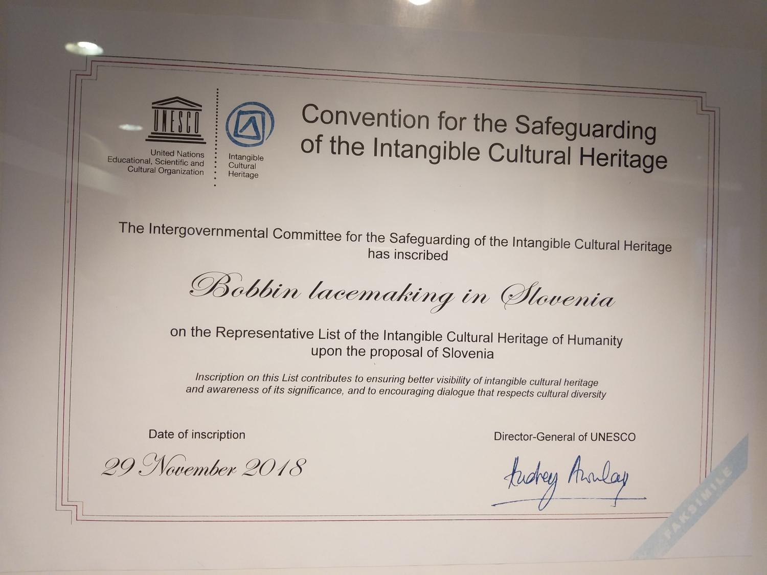 Slovenija je leta 2008 ratificirala Unescovo Konvencijo o varovanju nesnovne kulturne dediščine, istega leta pa je pod vodstvom Ministrstva za kulturo začel nastajati tudi Register nesnovne kulturne dediščine. V registru sta med 72 enotami tudi veščini klekljanja čipk v Sloveniji in suhozidne gradnje. Obe sta od lani vpisani na Unescov Reprezentativni seznam nesnovne kulturne dediščine človeštva, ki na mednarodni ravni odraža raznolikost nesnovne kulturne dediščine, osvešča o njenem pomenu in spodbuja dialog, ki spoštuje kulturno raznolikost.