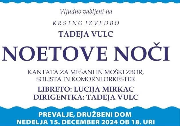Krstna izvedba dela bo v nedeljo, 15. decembra, ob 18. uri v Družbenem domu na Prevaljah. Vabijo vas, da se jim pridružite in skupaj z njimi doživite večer vrhunske glasbe, polne čustev in izrazne moči. Naj bo to trenutek, ko vas glasba poveže in navdihne.