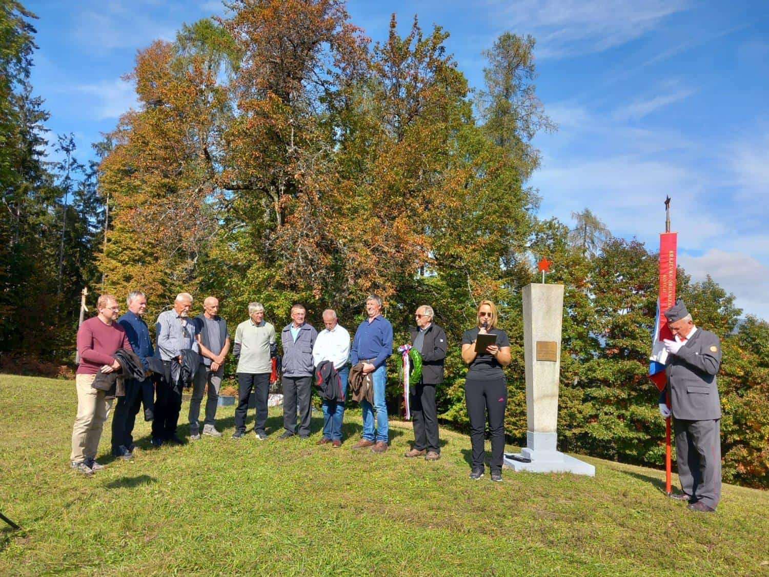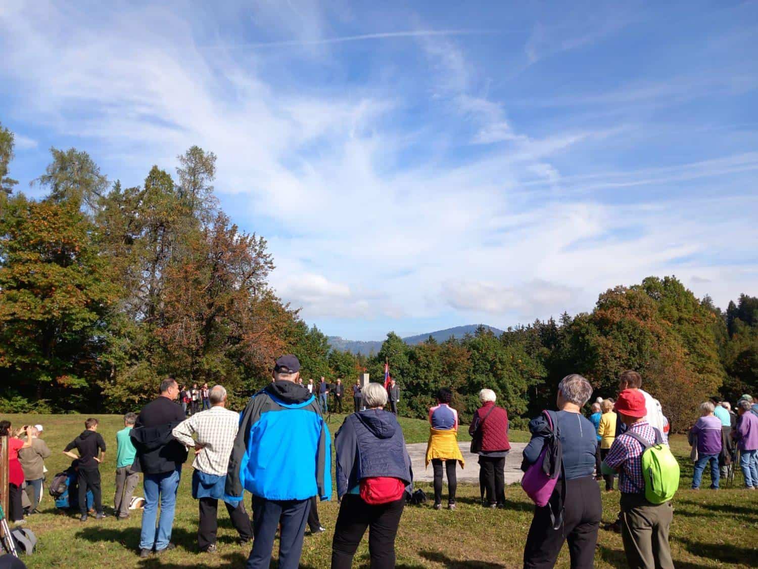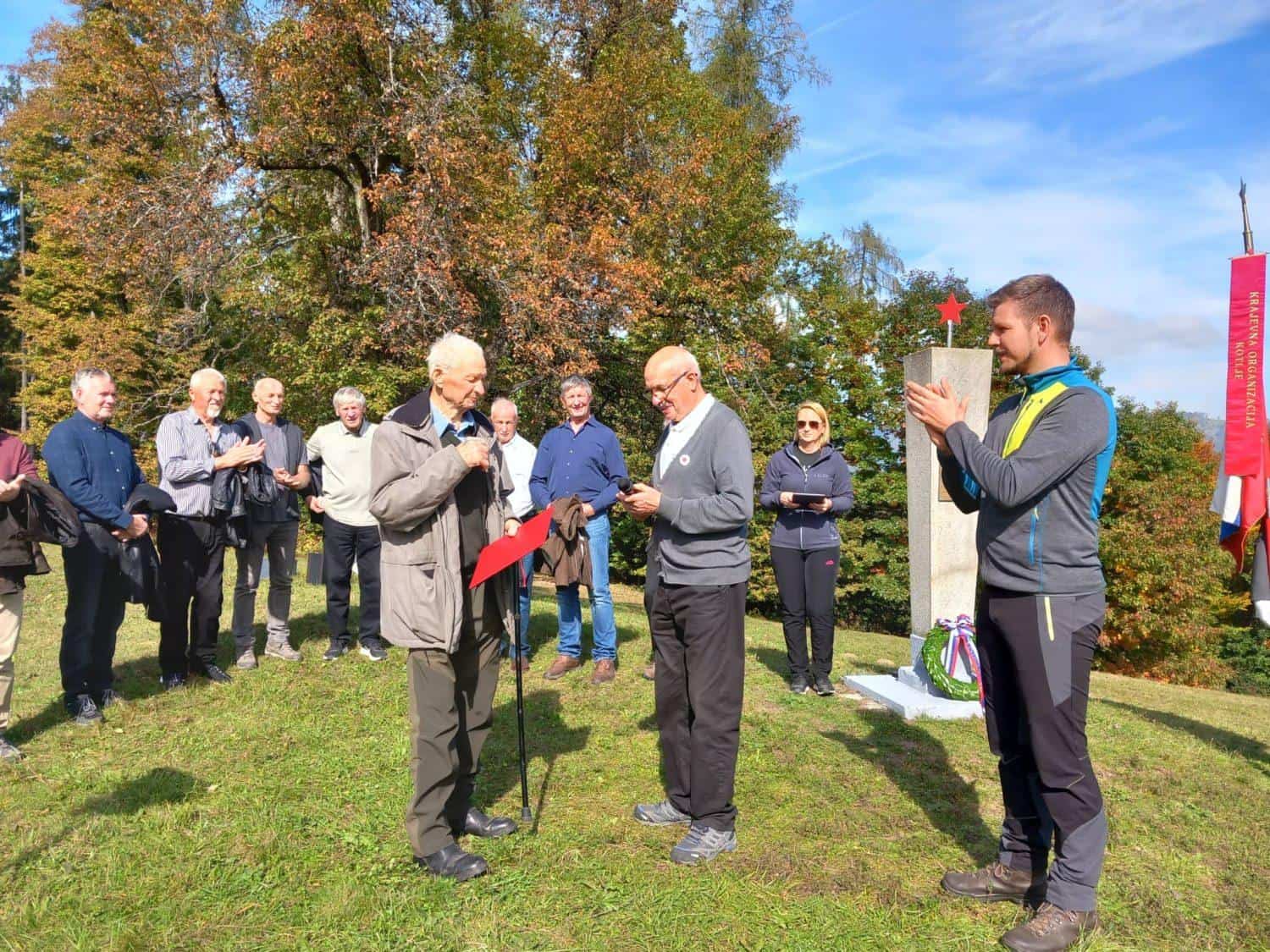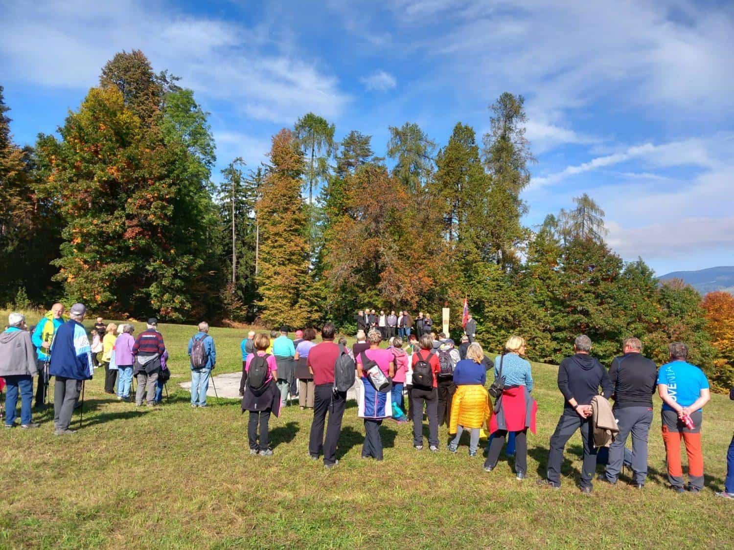 Številni pohodniki so se danes pred svečanim dogodkom udeležili tradicionalnega pohoda od Gimnazije Ravne do kmetije Naveršnik ter do spomenika.